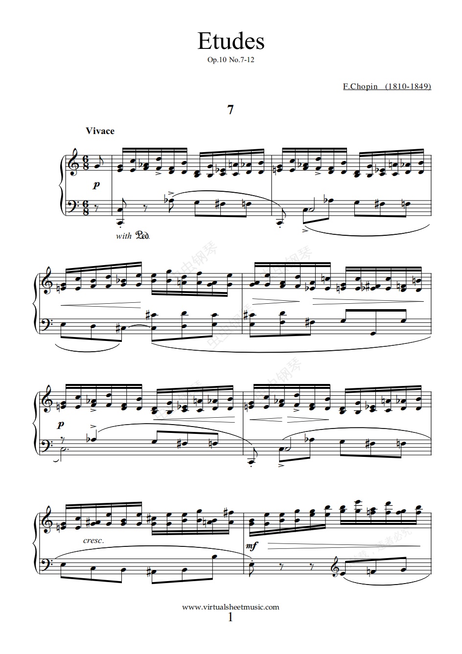 钢琴谱:(C大调练习曲)Etudes Op.10 No.7