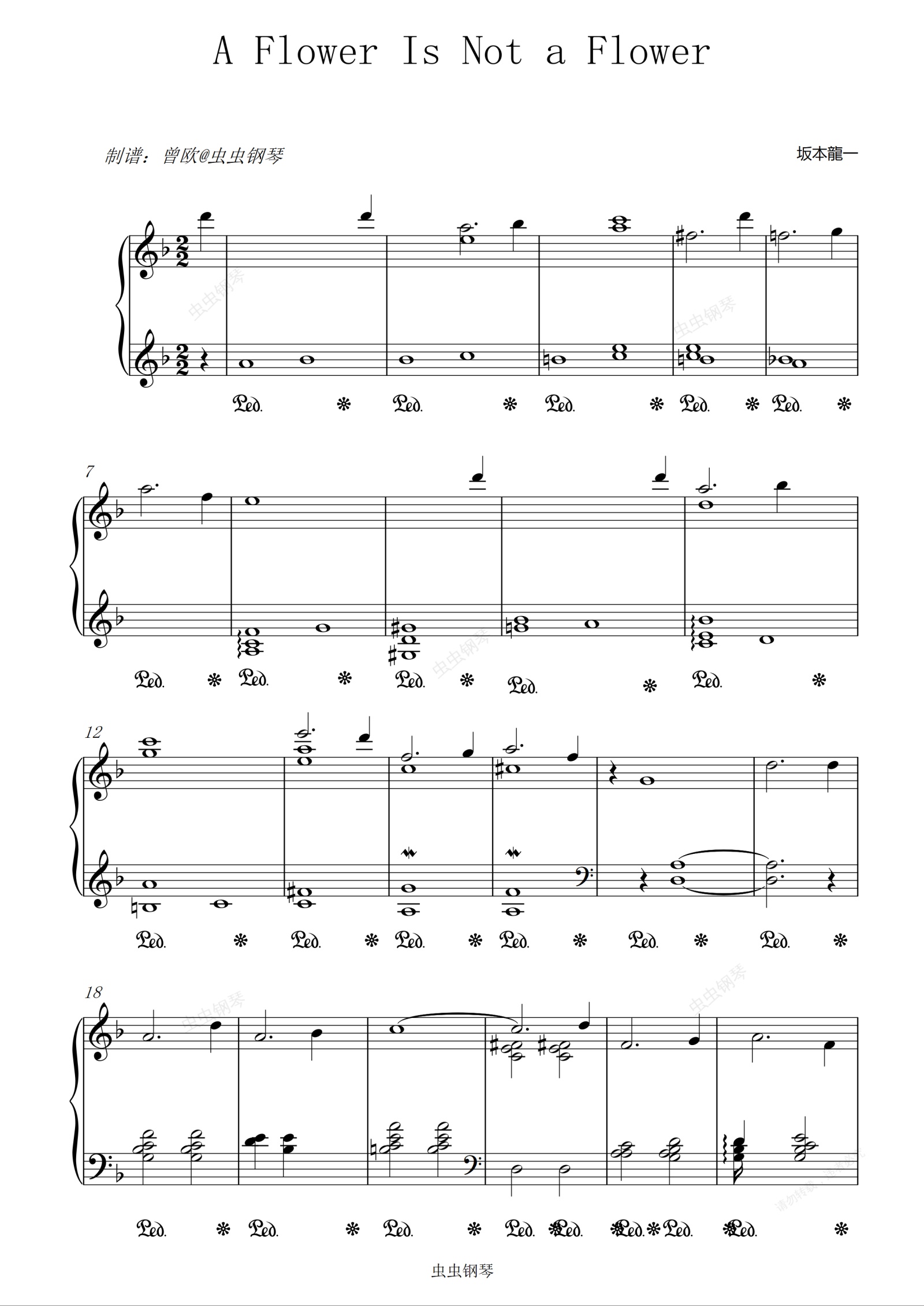 钢琴谱:A Flower is not a Flower (花非花) - 坂本龙一