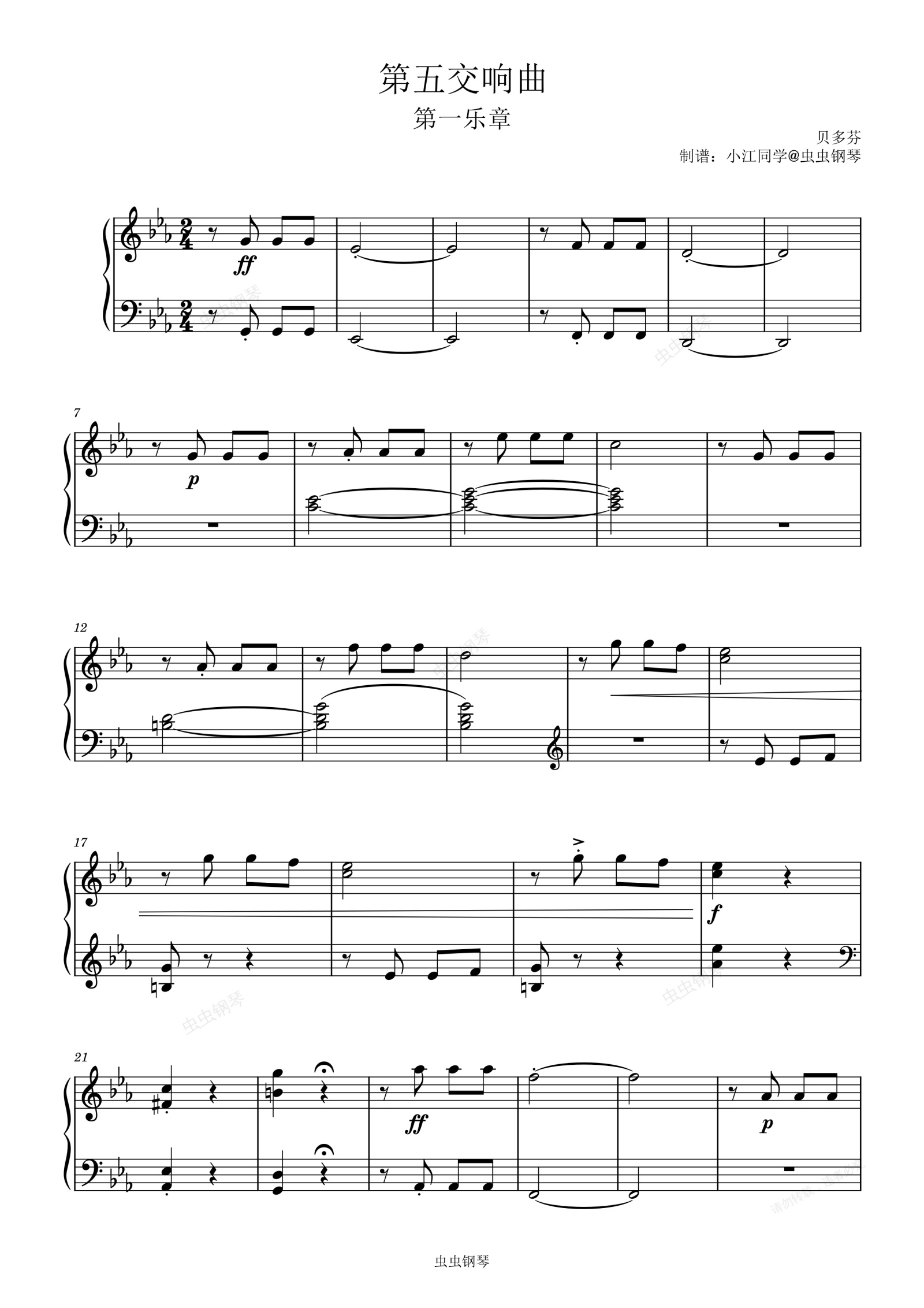 钢琴谱:命运交响曲 第一乐章