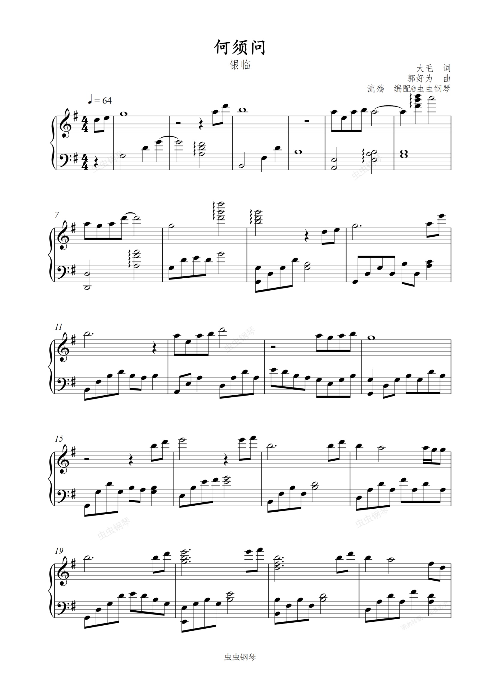 钢琴谱:何须问(G调版)