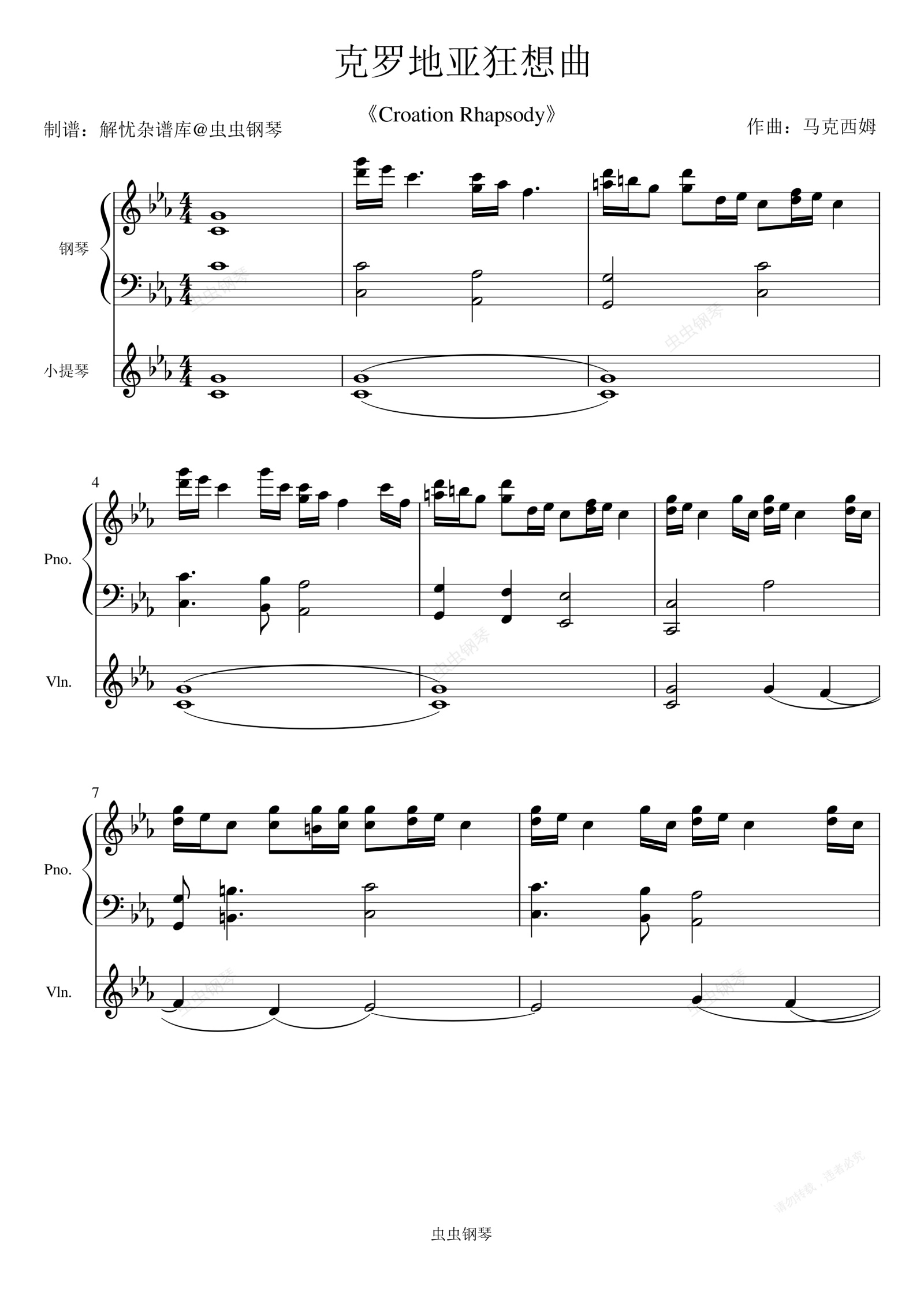 钢琴谱:克罗地亚狂想曲(带小提琴版本)