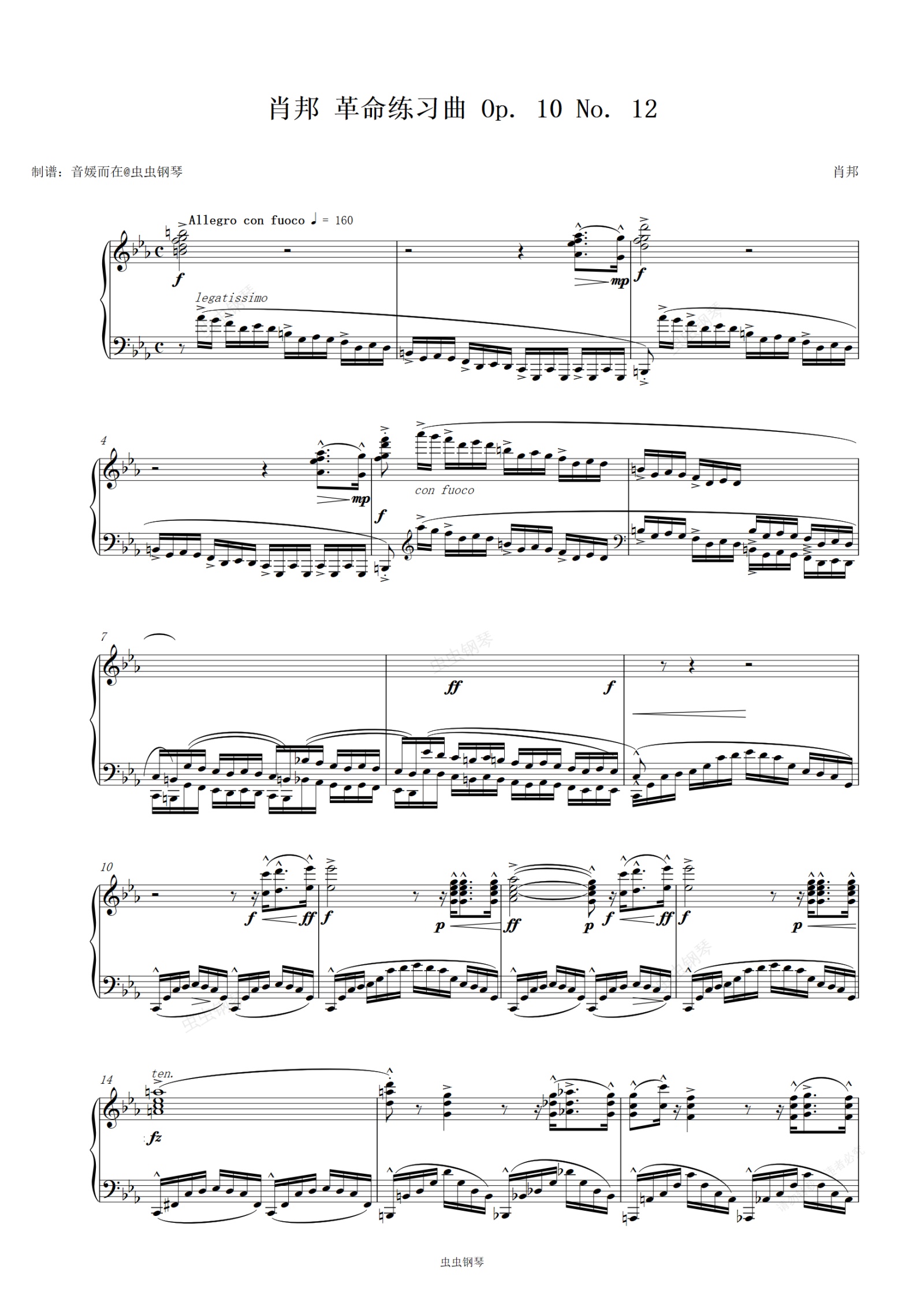 钢琴谱:肖邦 革命练习曲 Op. 10 No. 12