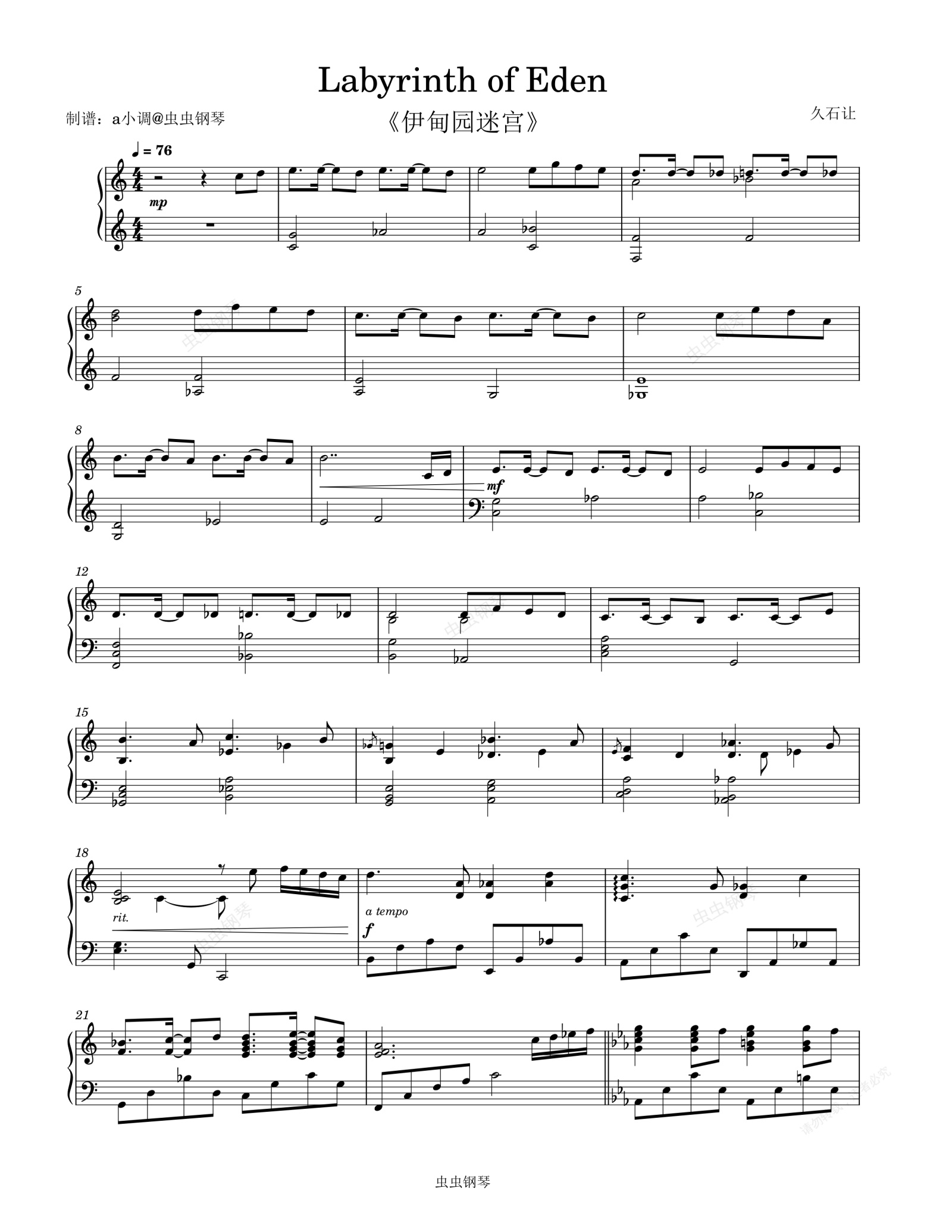 钢琴谱:Labyrinth of Eden《伊甸园迷宫》