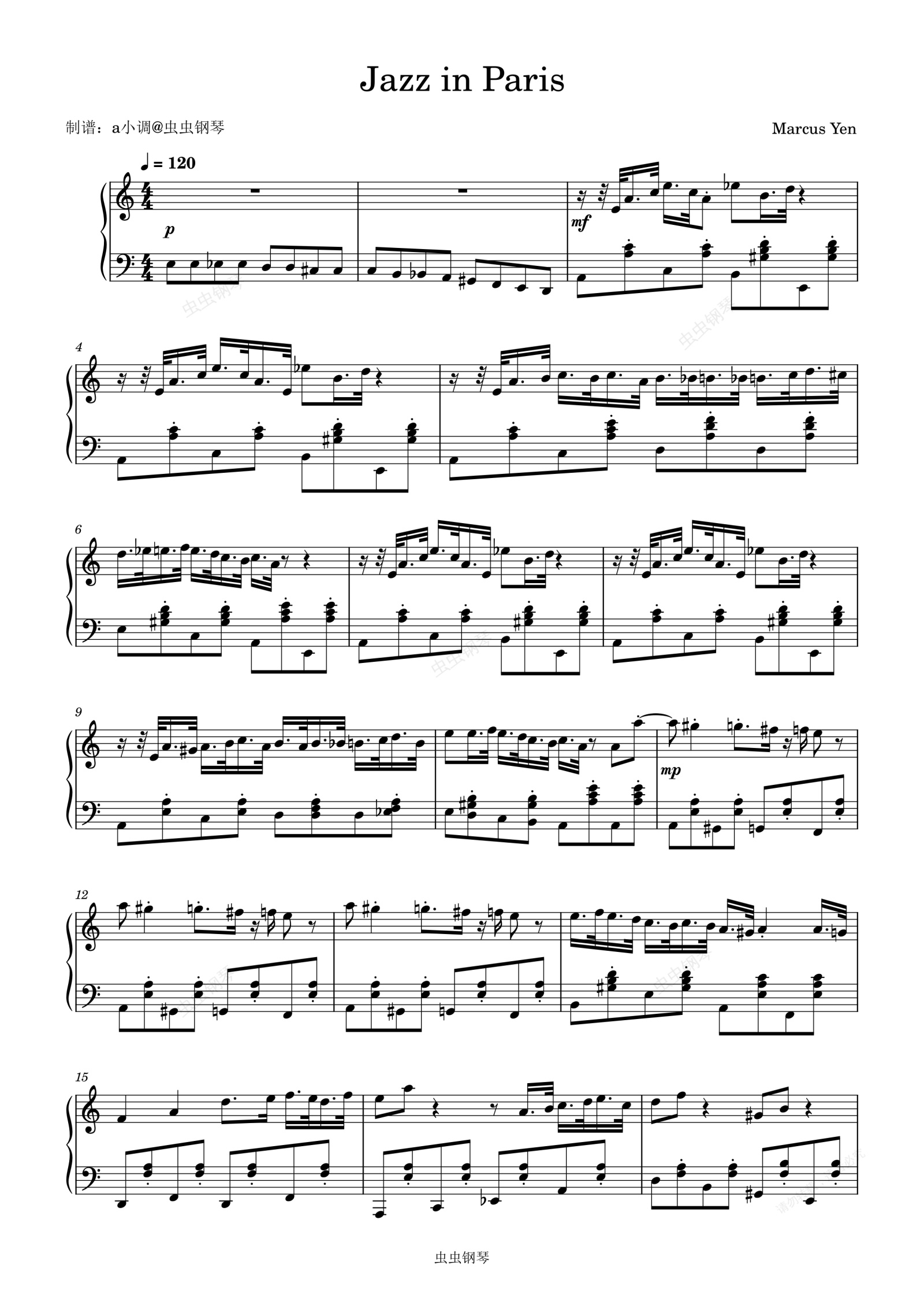 钢琴谱:Jazz in Paris - Marcus Yen