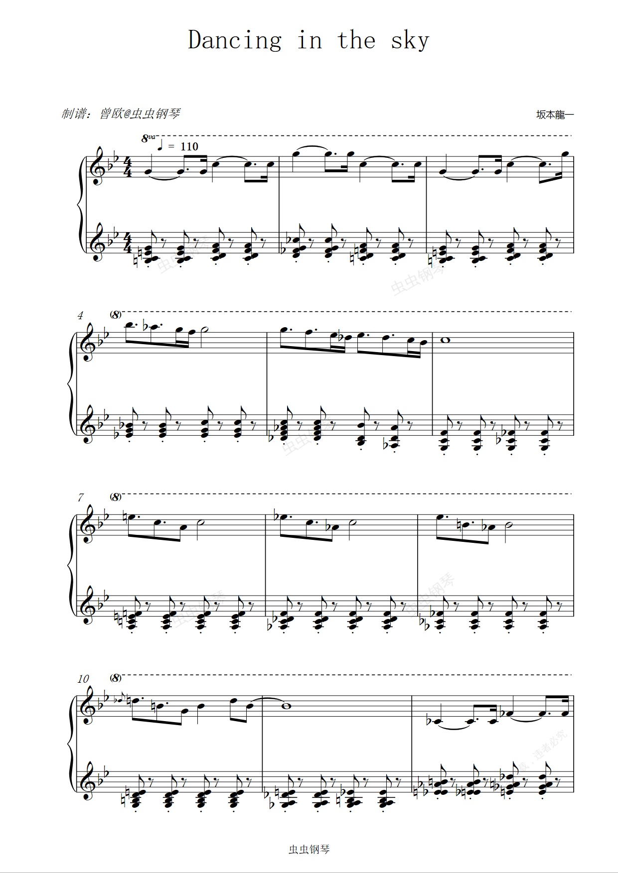 钢琴谱:Dancing in the sky - 坂本龙一 (轻快地踮脚)