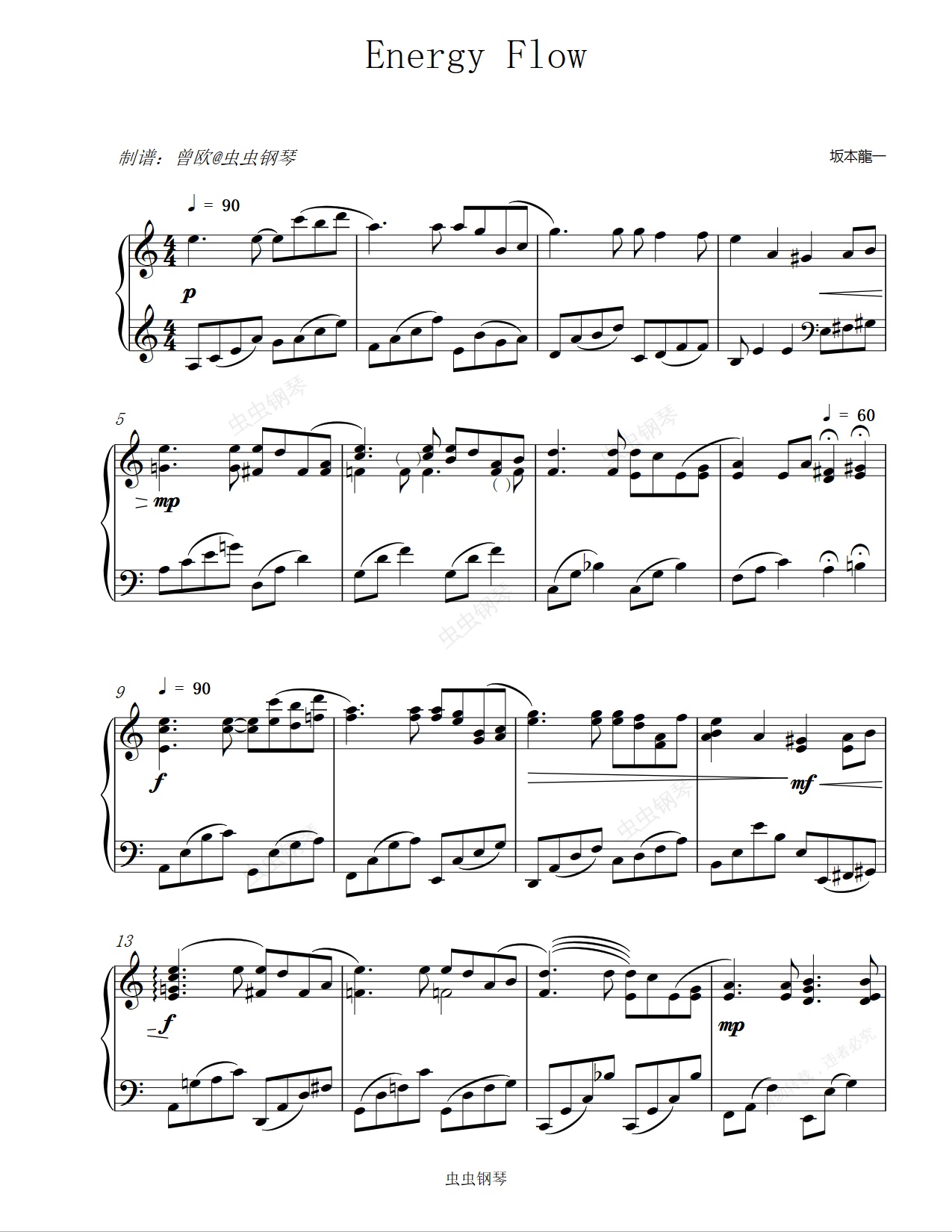 钢琴谱:Energy Flow - 坂本龙一 【雨水风,起舞】