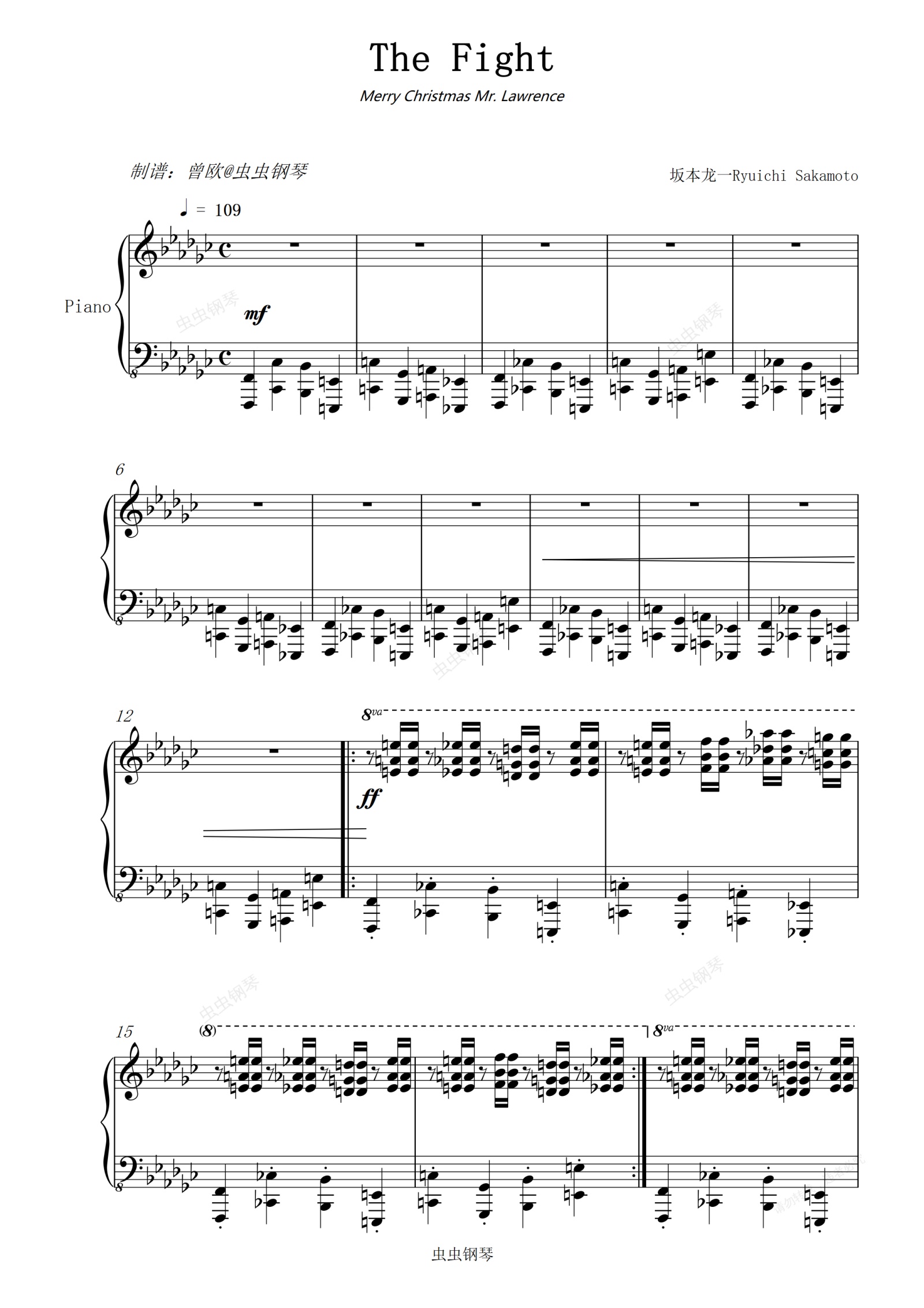 钢琴谱:The Fight - 坂本龙一 (《Merry Christmas Mr. Lawrence》原声带)