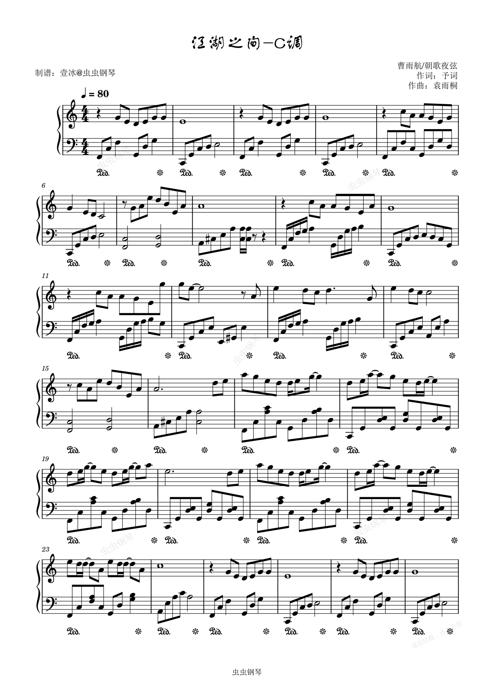 钢琴谱:江湖之间//曹雨航/朝歌夜弦-C调