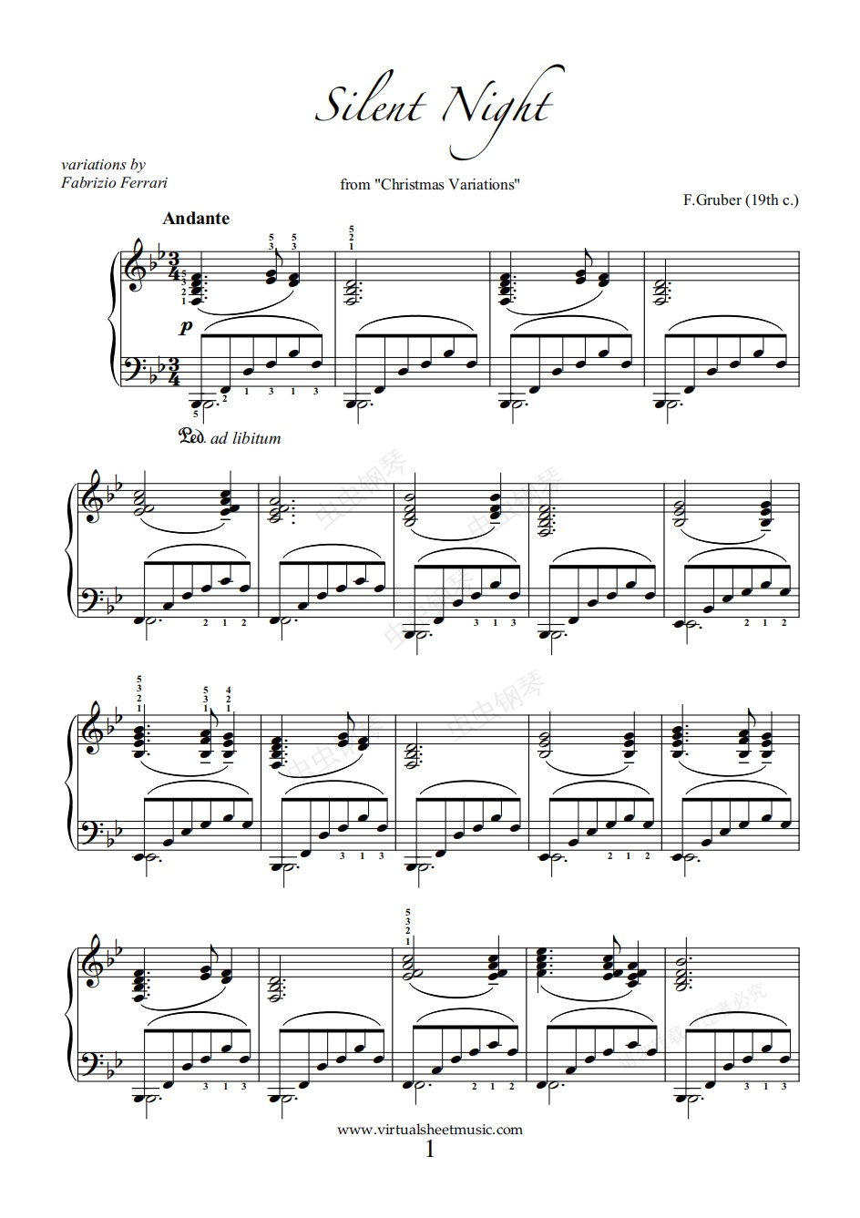 钢琴谱:Silent Night(平安夜)高级独奏版