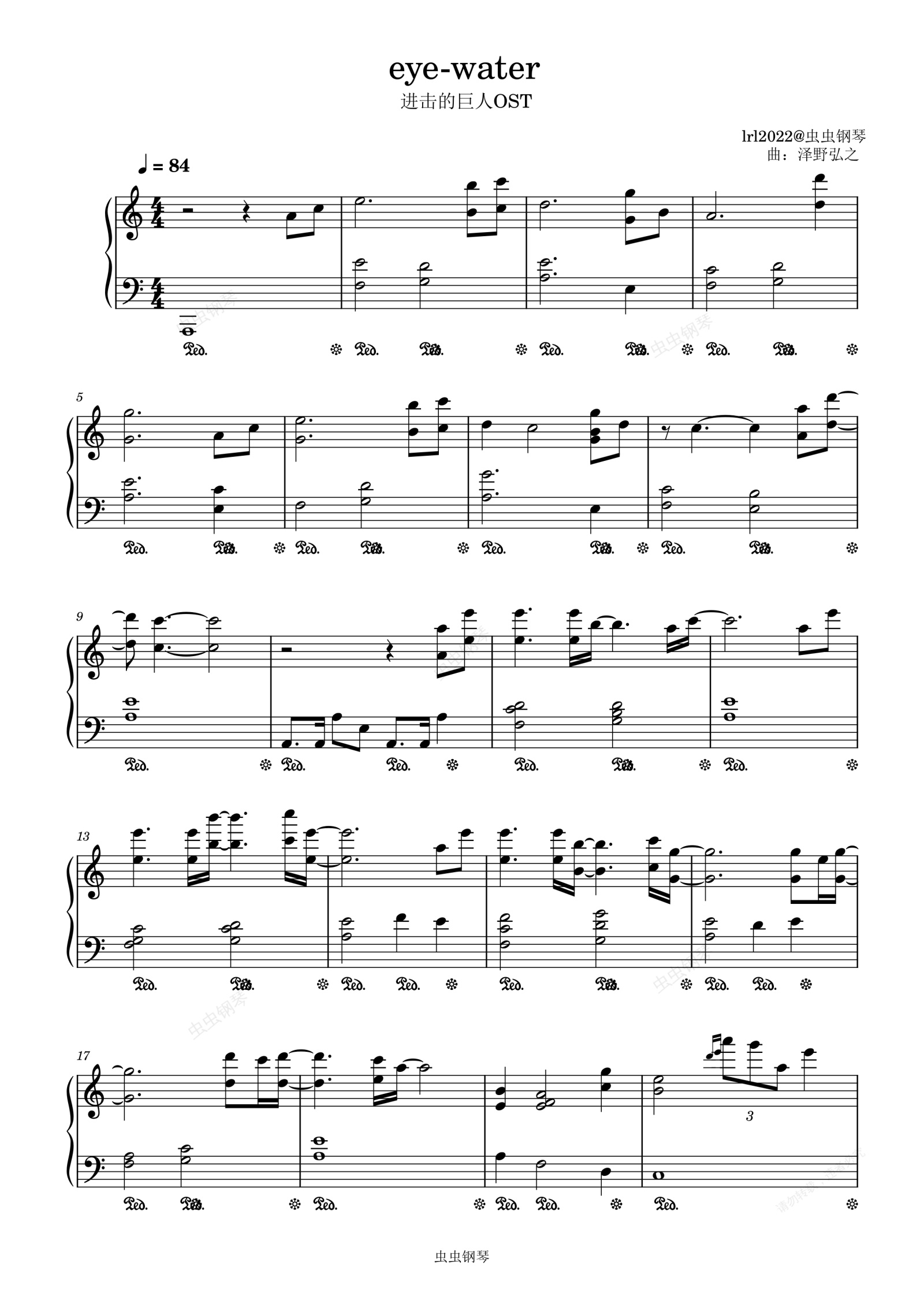 钢琴谱:eye-water-进击的巨人OST-泪水-独奏版-钢琴谱-泽野弘之