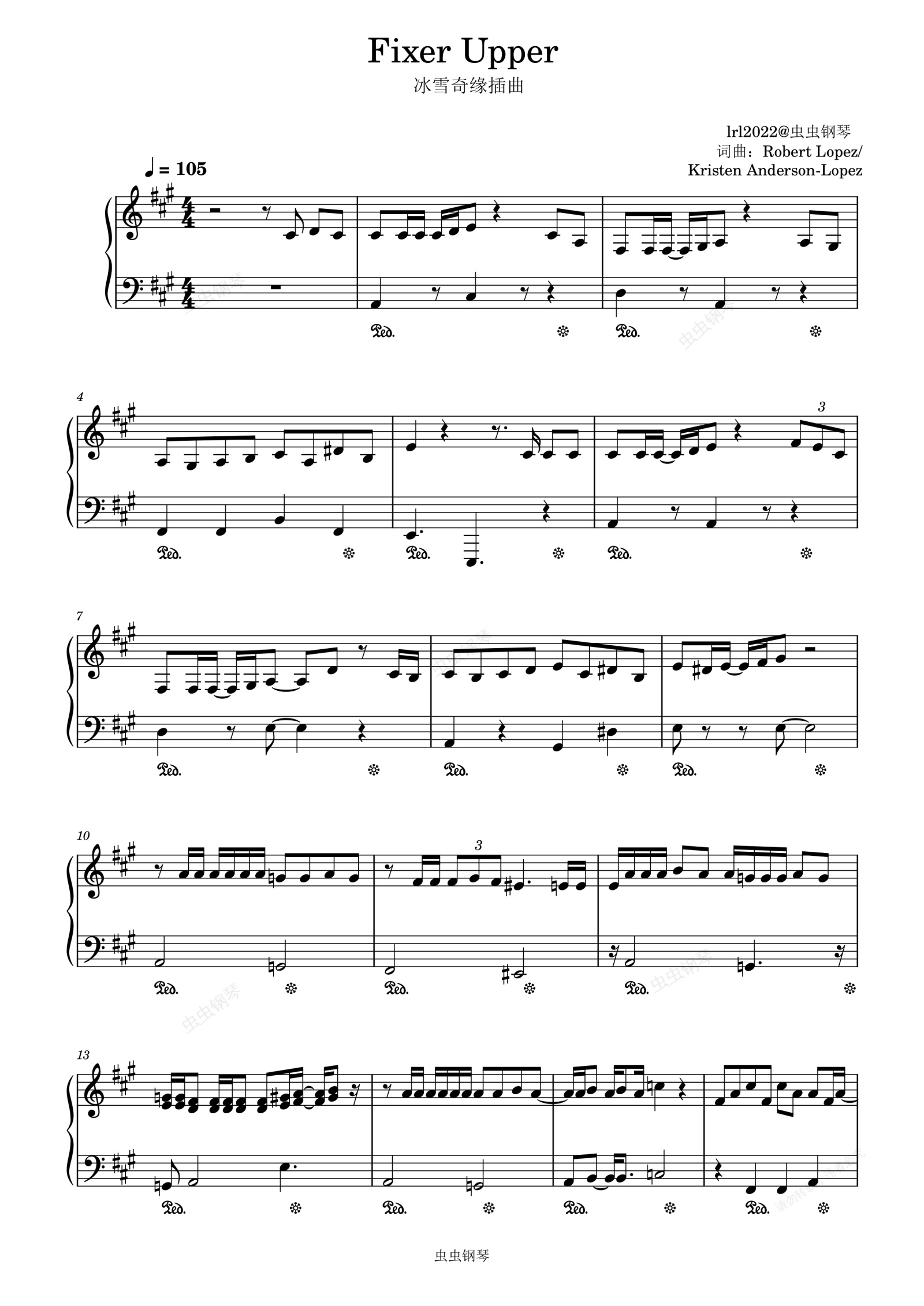 钢琴谱:Fixer Upper-冰雪奇缘插曲-独奏版-钢琴谱