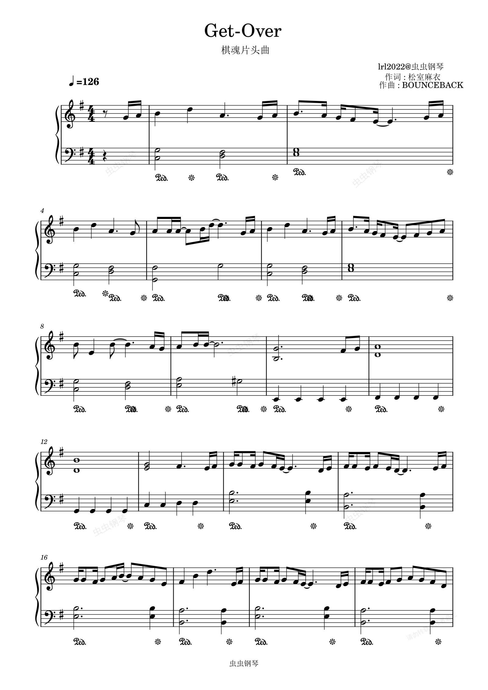 钢琴谱:Get Over-棋魂片头曲-独奏版-钢琴谱