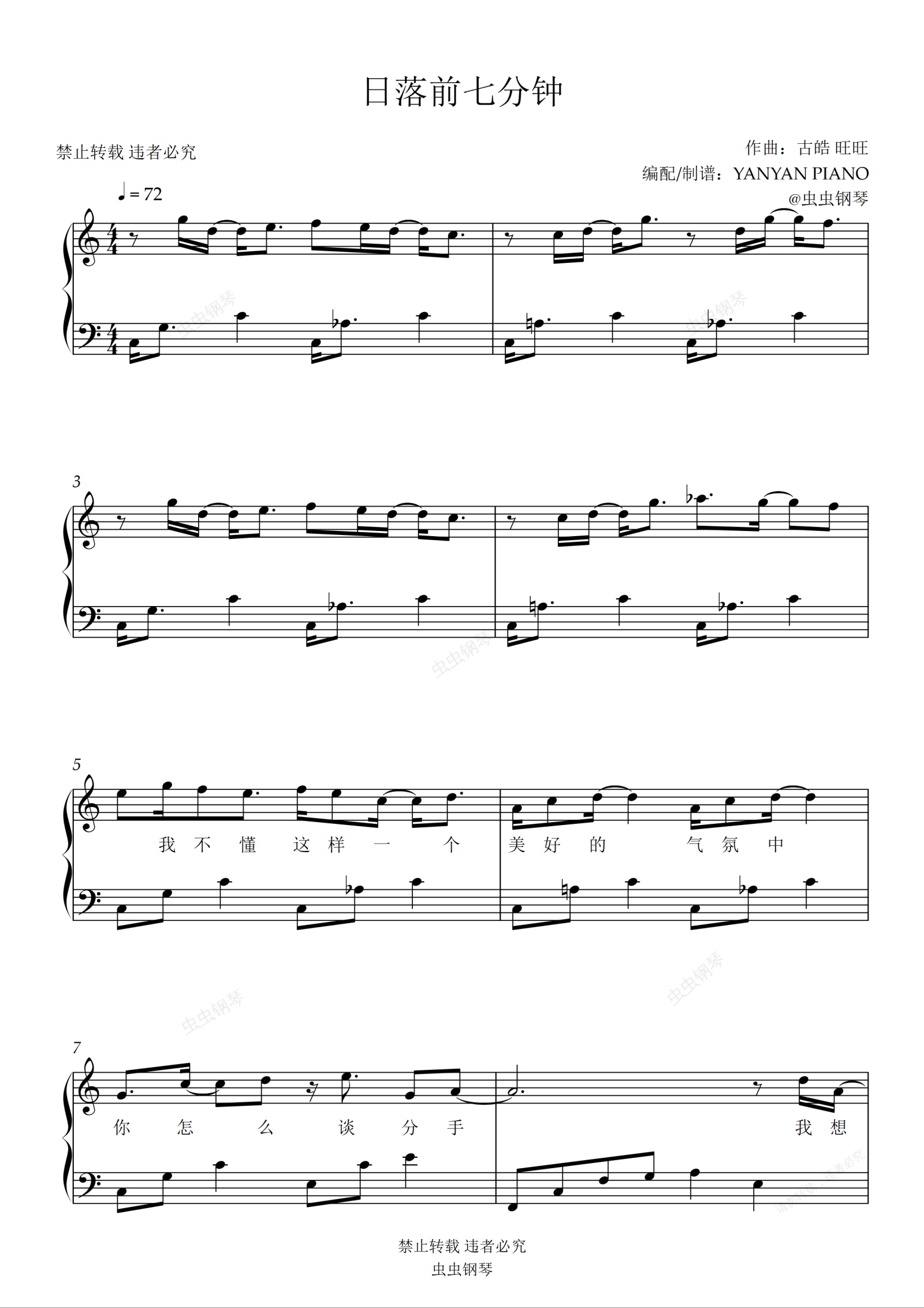 钢琴谱:好听易弹【日落前七分钟】王心凌