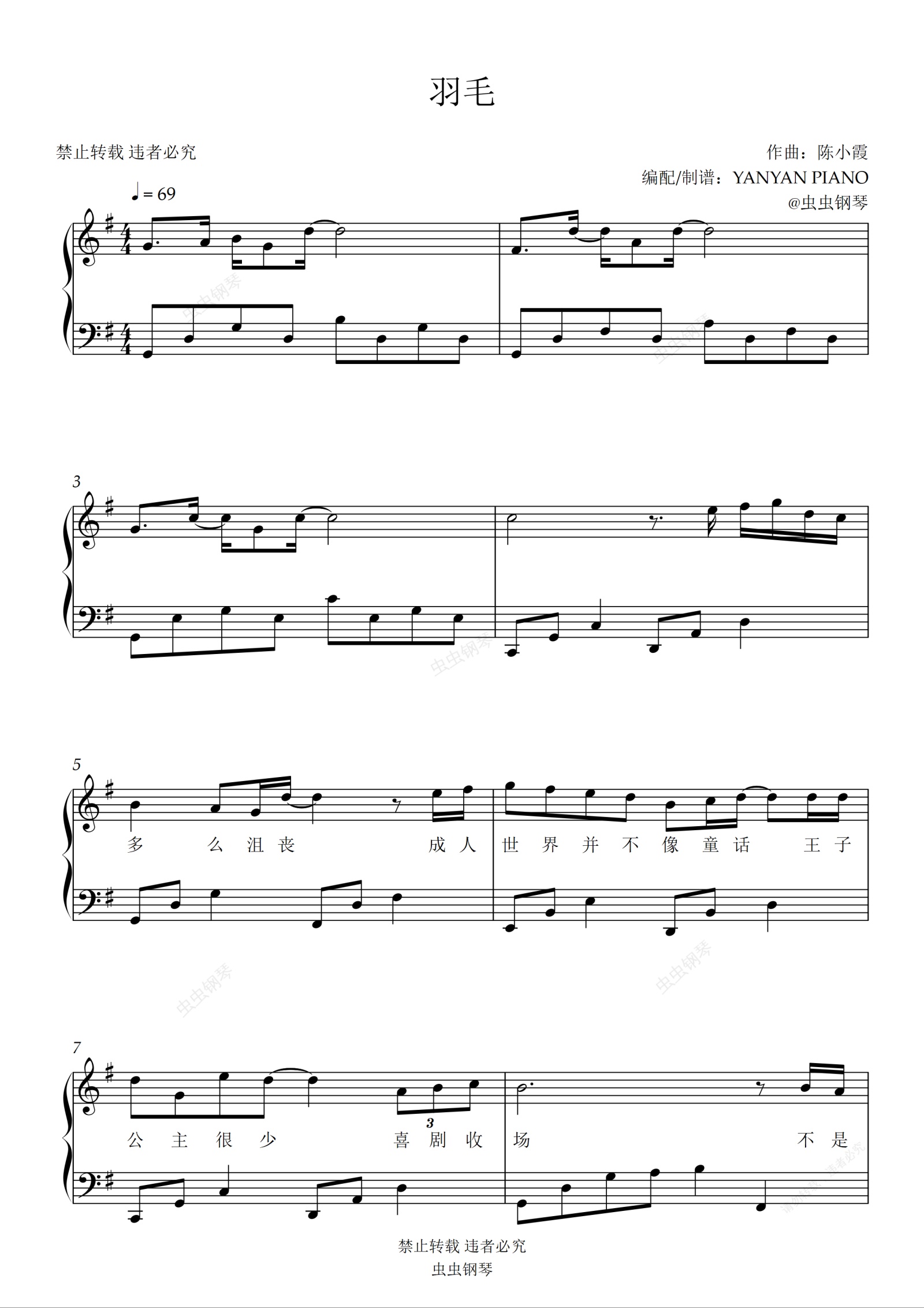 钢琴谱:好听易弹【羽毛】王心凌