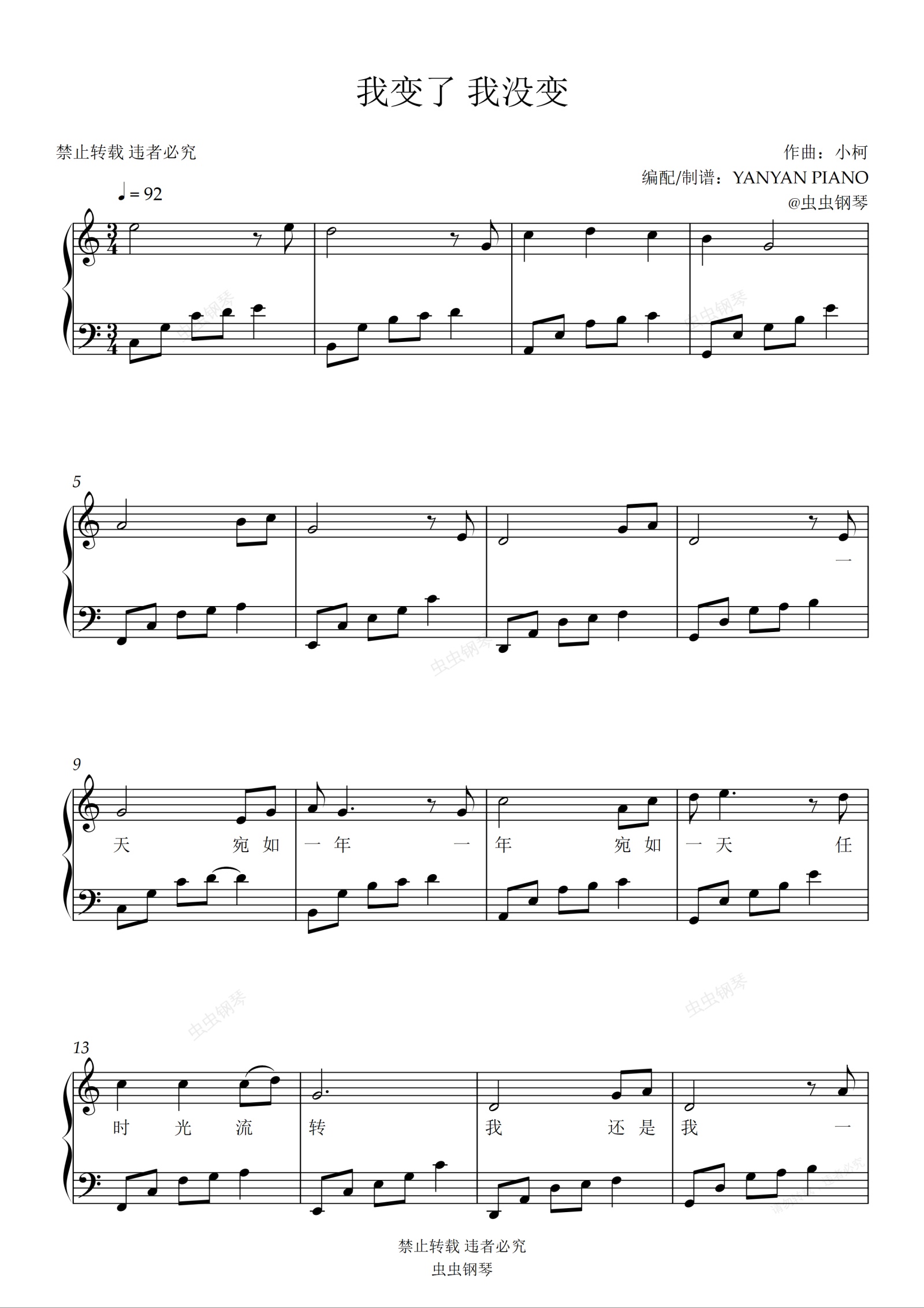 钢琴谱:好听易弹【我变了我没变】杨宗纬