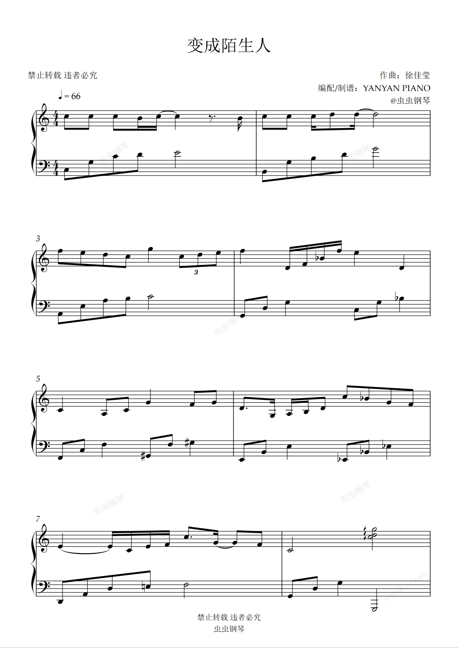 钢琴谱:好听易弹【变成陌生人】王心凌《幸福选择题》片尾曲