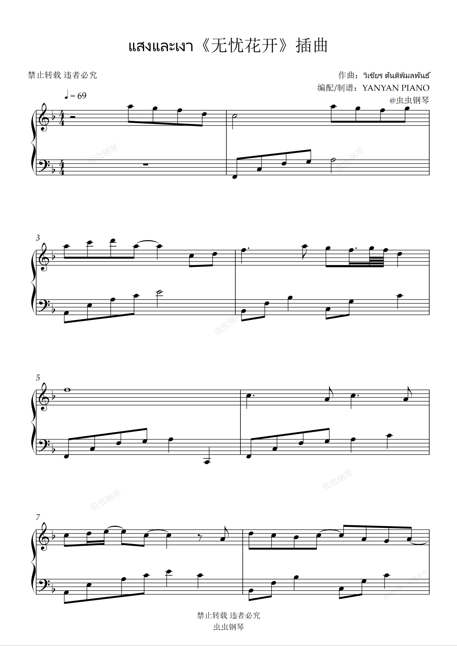 钢琴谱:好听易弹【แสงและเงา】Gam Wichayanee《无忧花开》插曲