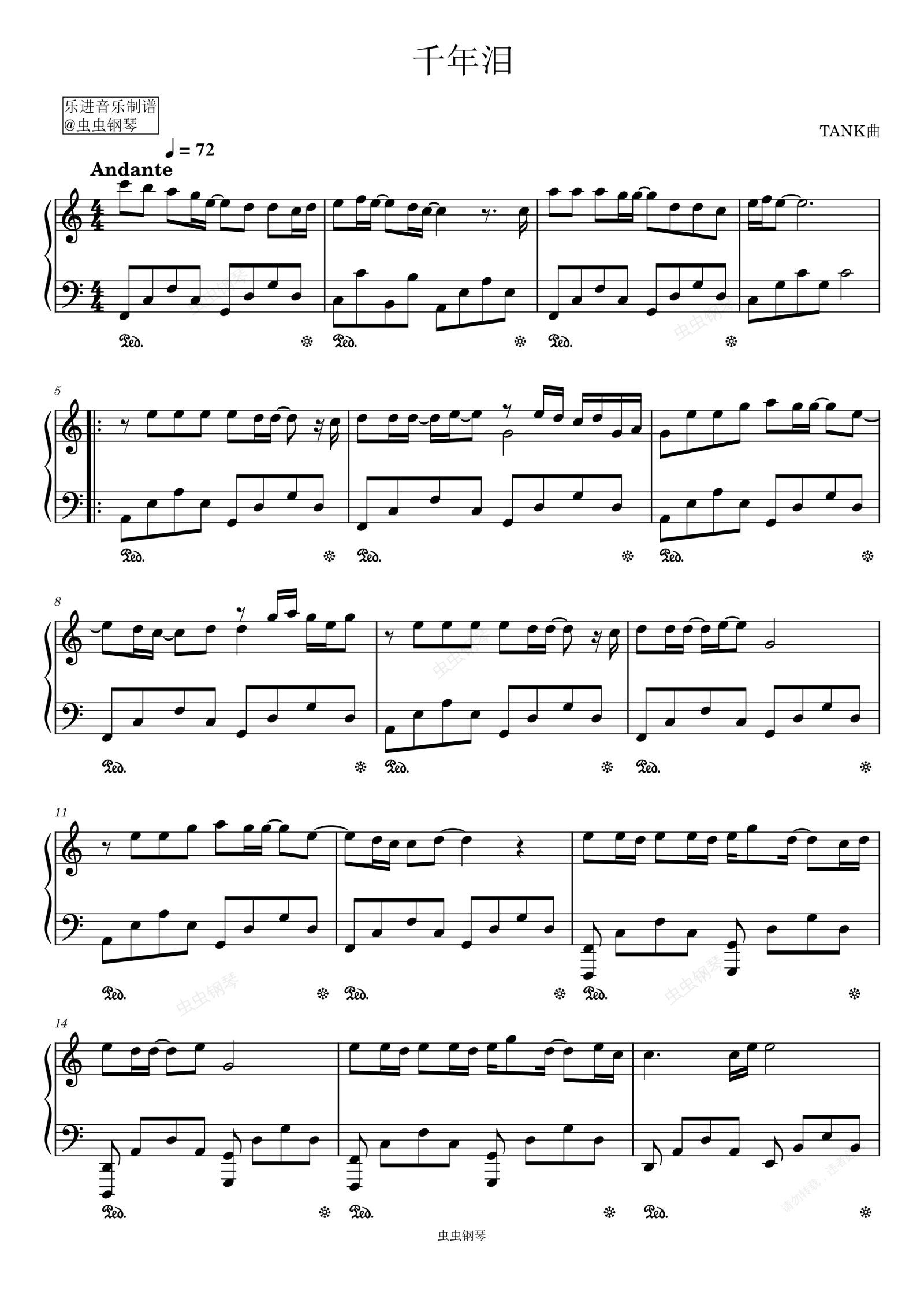 钢琴谱:千年泪 C大调 电视剧《天外飞仙》片尾曲