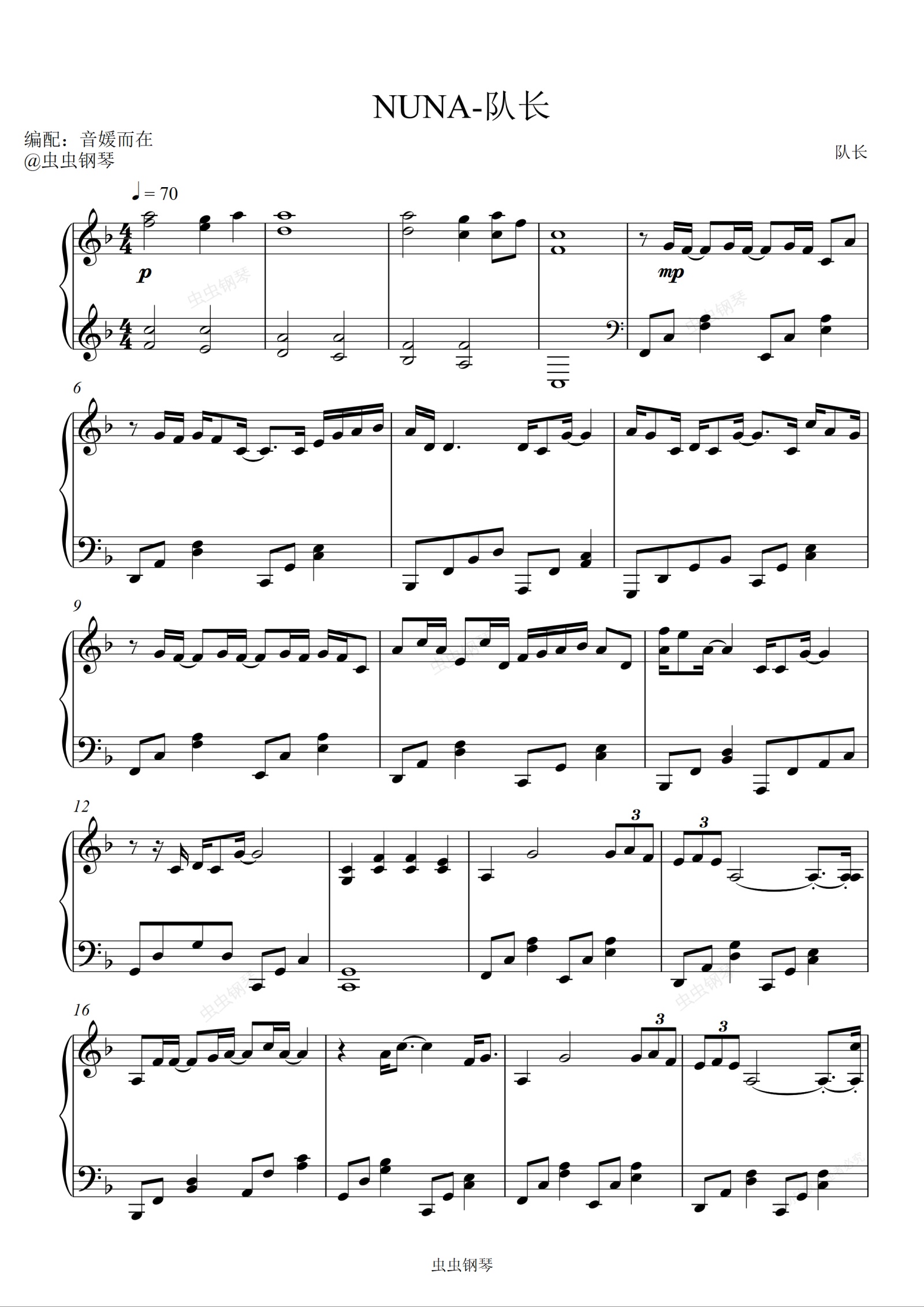 钢琴谱:《NUNA 》钢琴曲 - 队长 【好听易弹】