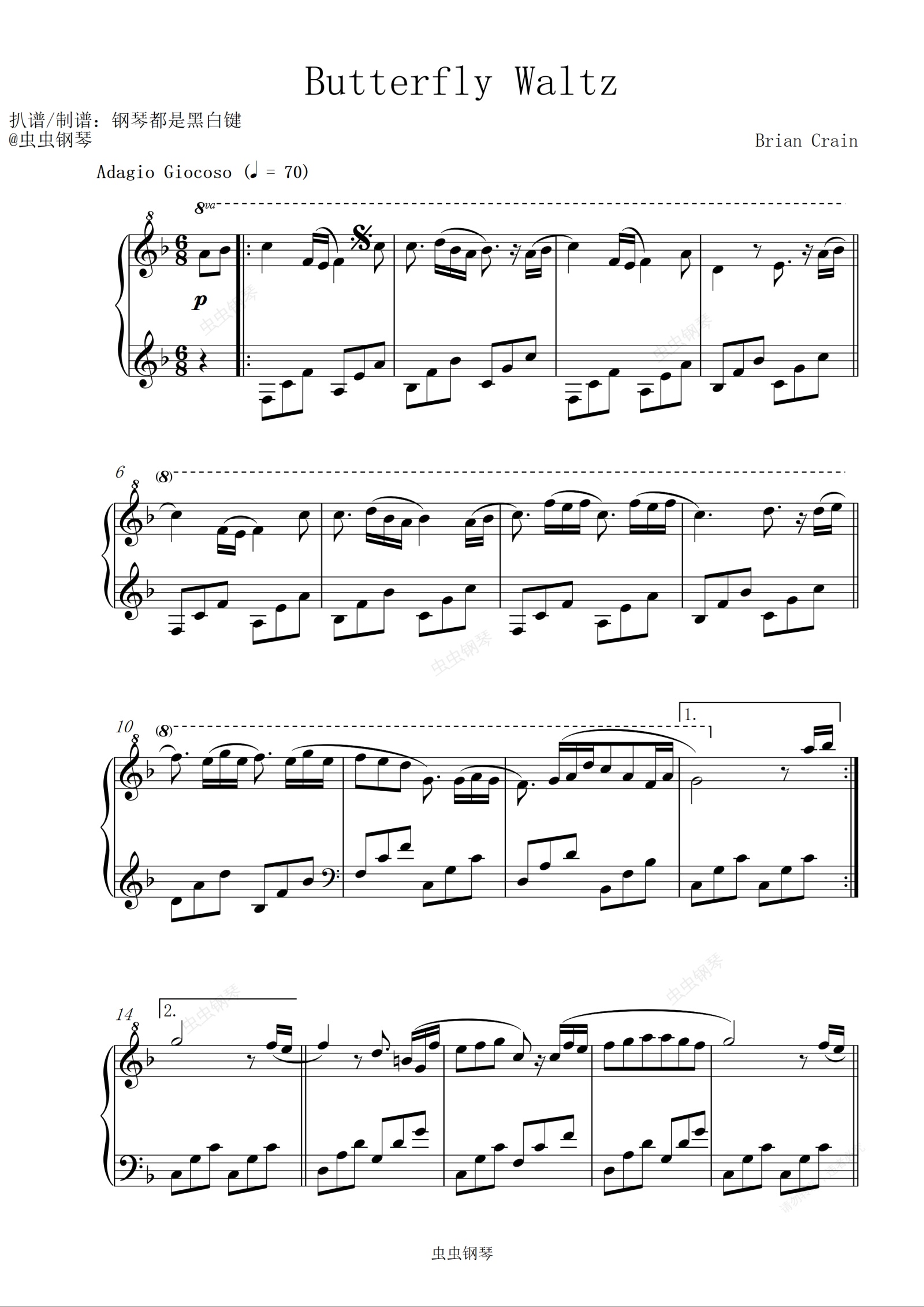 钢琴|超温柔《Butterfly Waltz》,仿佛处身于宽阔的花海,微风拂面~