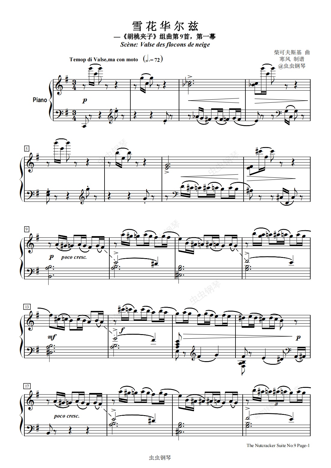 钢琴谱:胡桃夹子组曲9-雪花华尔兹