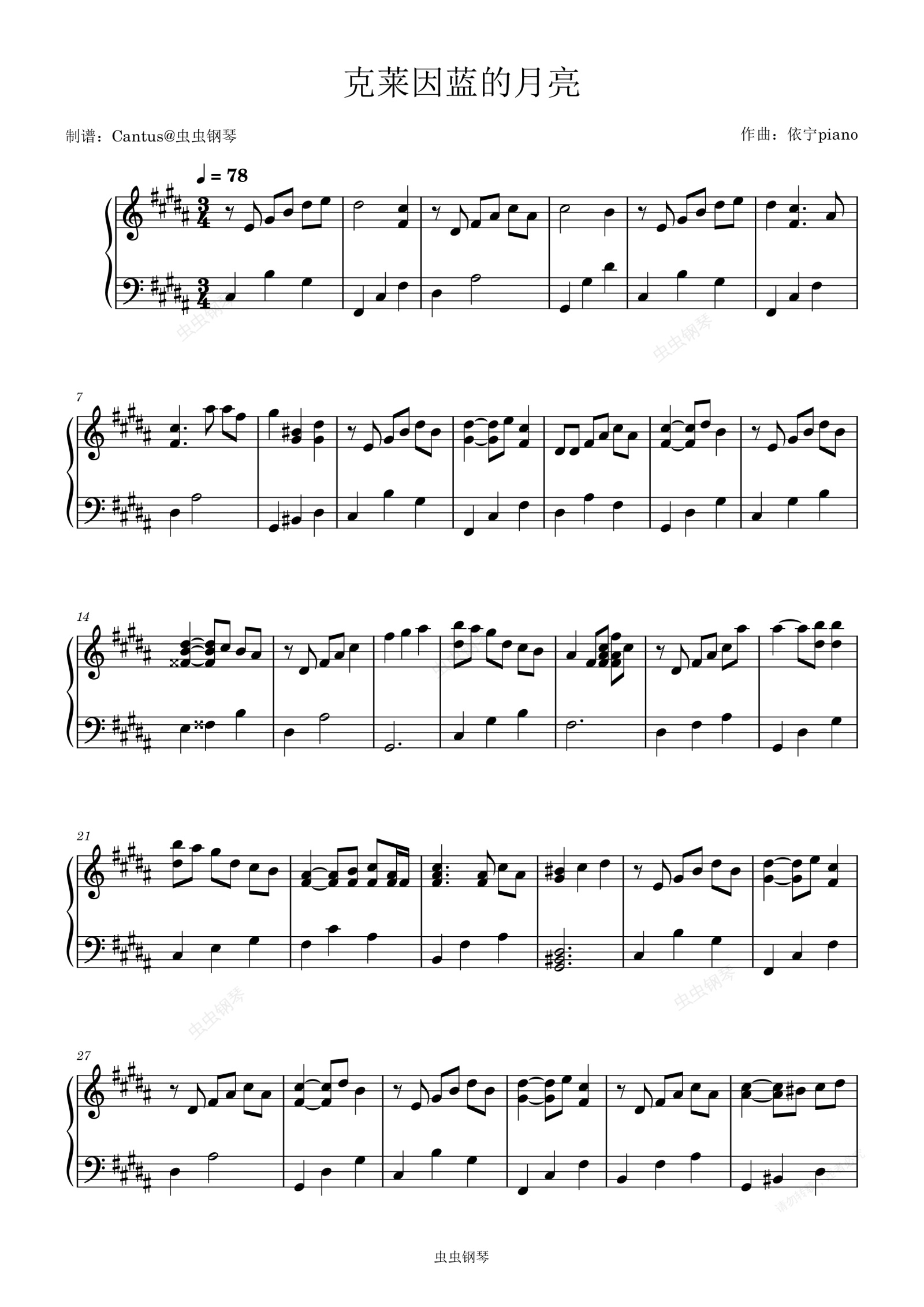 钢琴谱:克莱因蓝的月亮-依宁piano