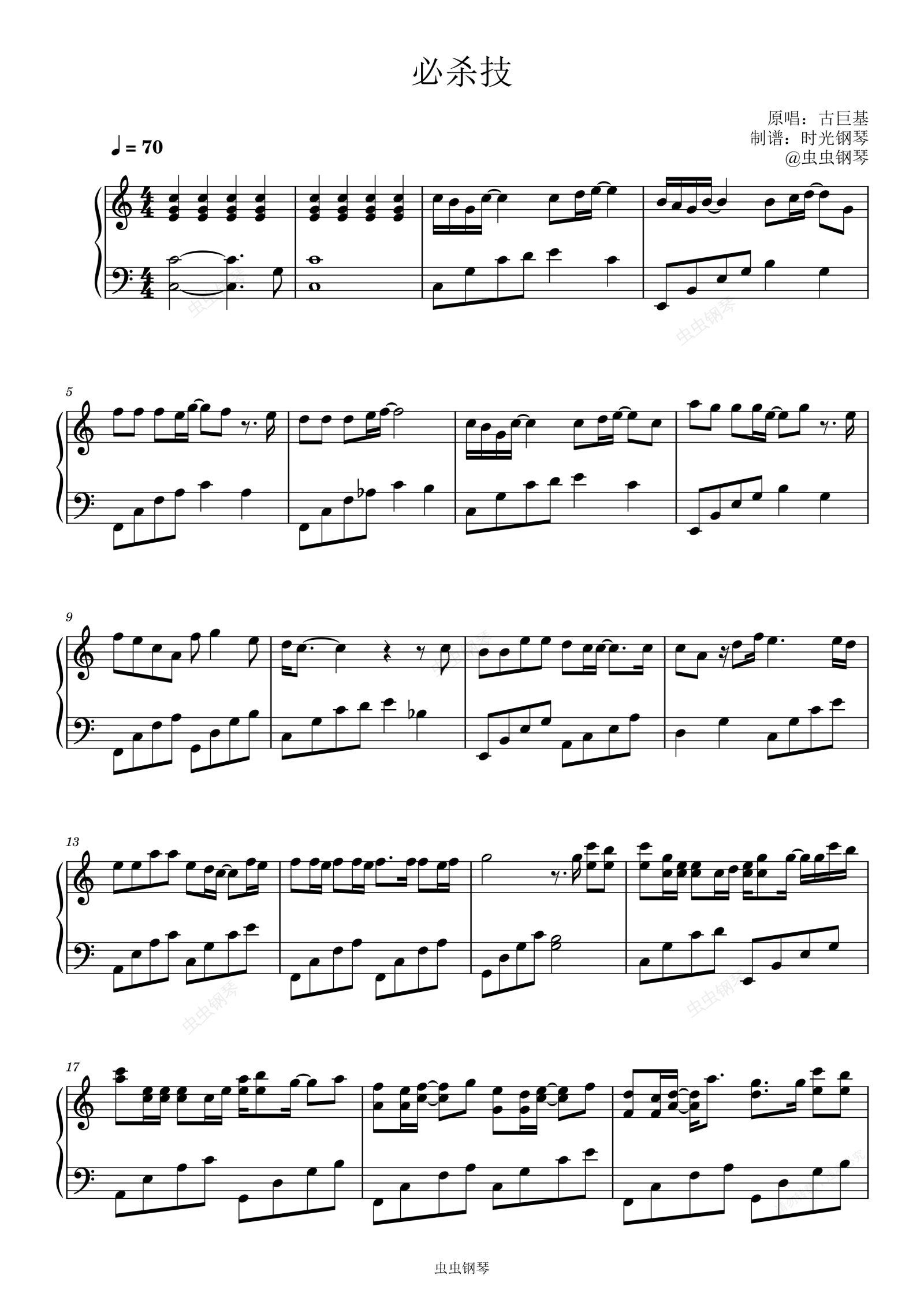 钢琴谱:必杀技-古巨基 完美C调
