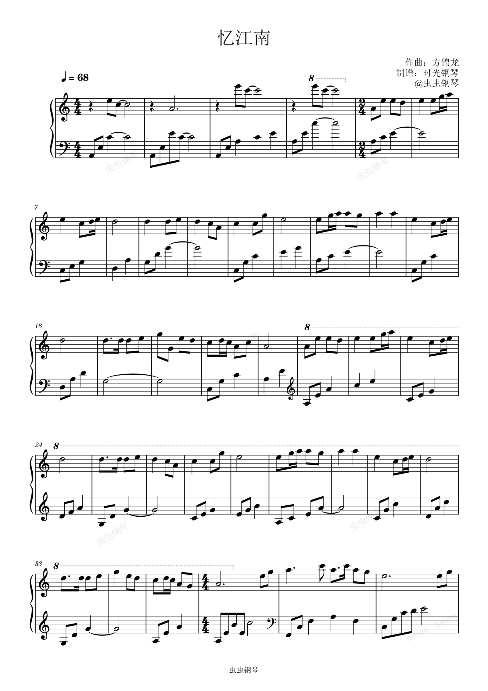 钢琴谱:忆江南-方锦龙 完美还原