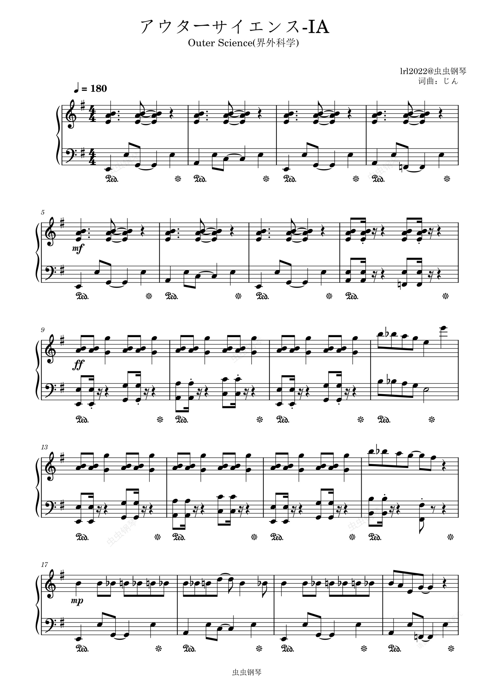 钢琴谱:アウターサイエンス-IA-独奏版-钢琴谱-Outer Science-(界外科学)