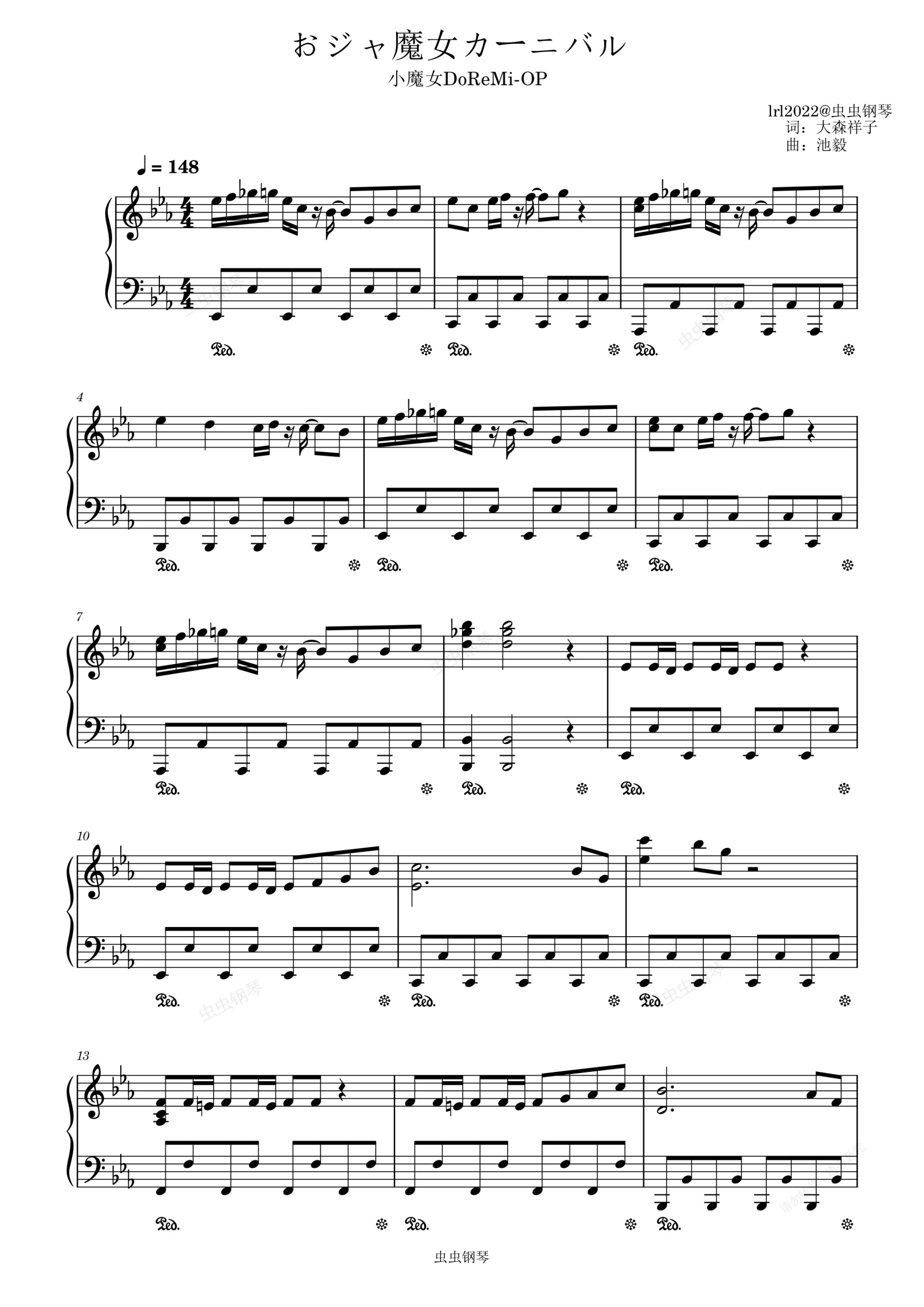 钢琴谱:おジャ魔女カーニバル!!-小魔女DoReMi OP-独奏版-钢琴谱