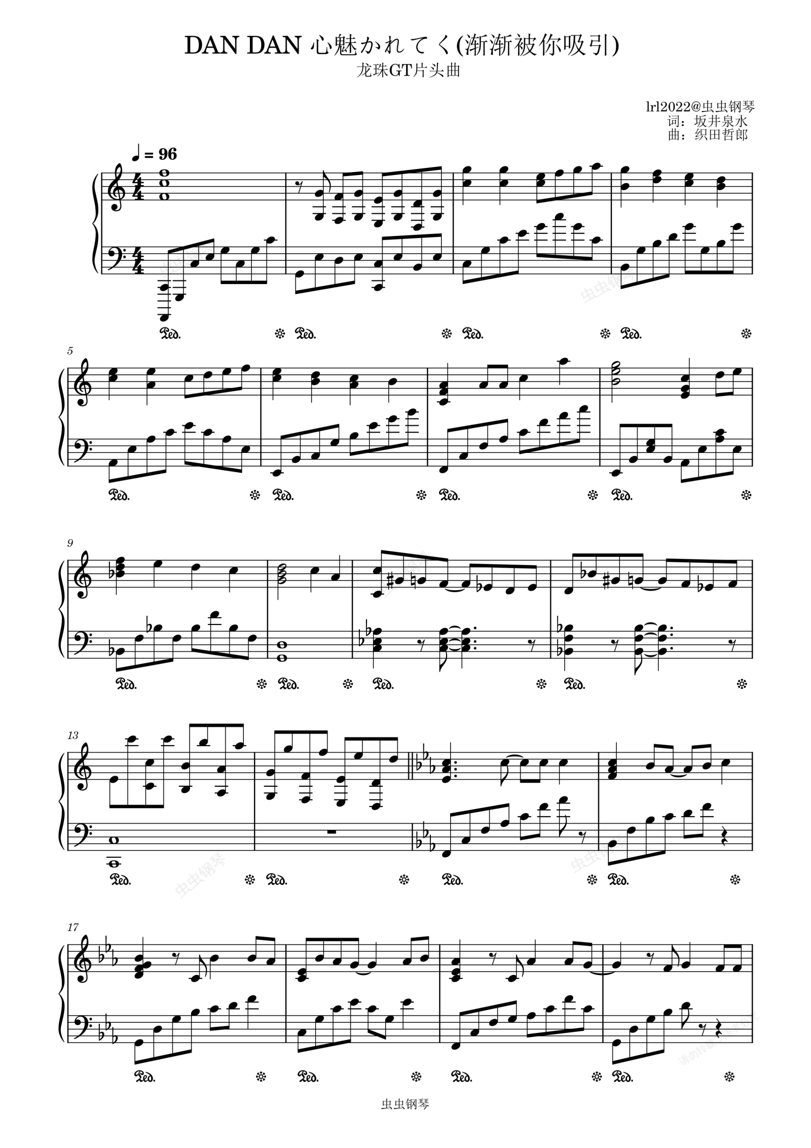 钢琴谱:渐渐被你吸引-龙珠GT片头曲-独奏版-钢琴谱
