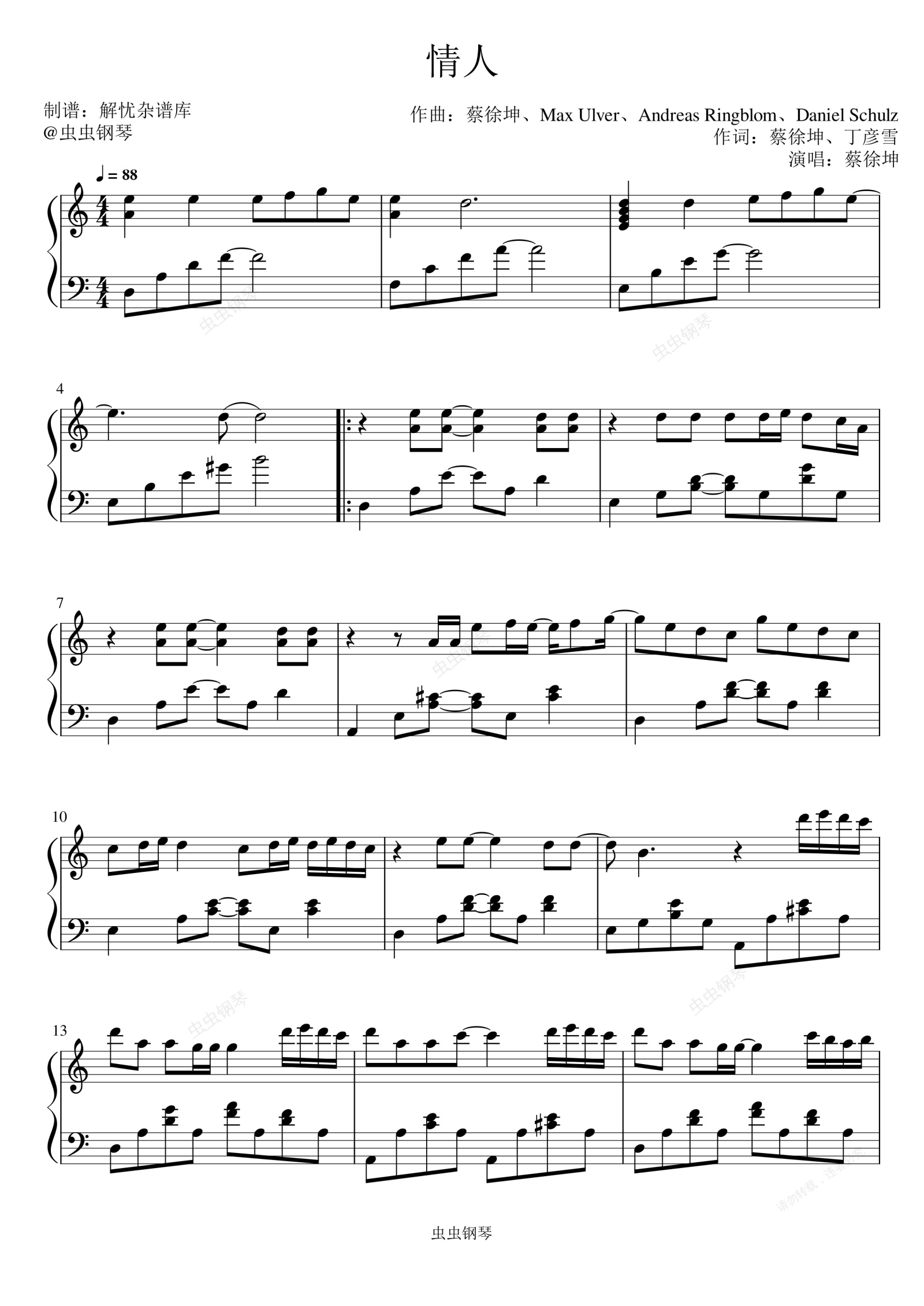 您的位置: 首页 > 钢琴谱库 > 情人 (蔡徐坤)钢琴谱-蔡徐坤