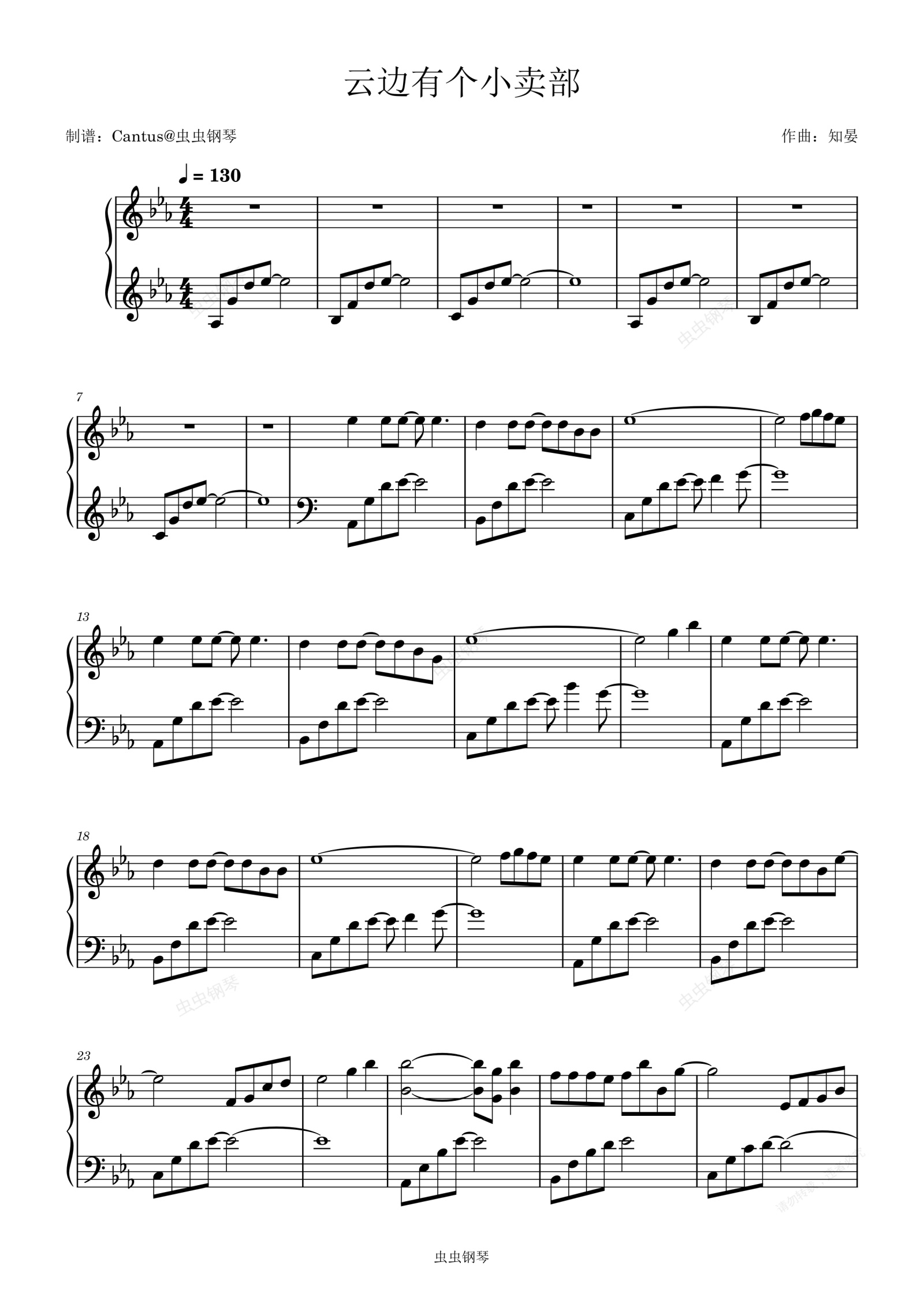 钢琴谱:云边有个小卖部-知晏