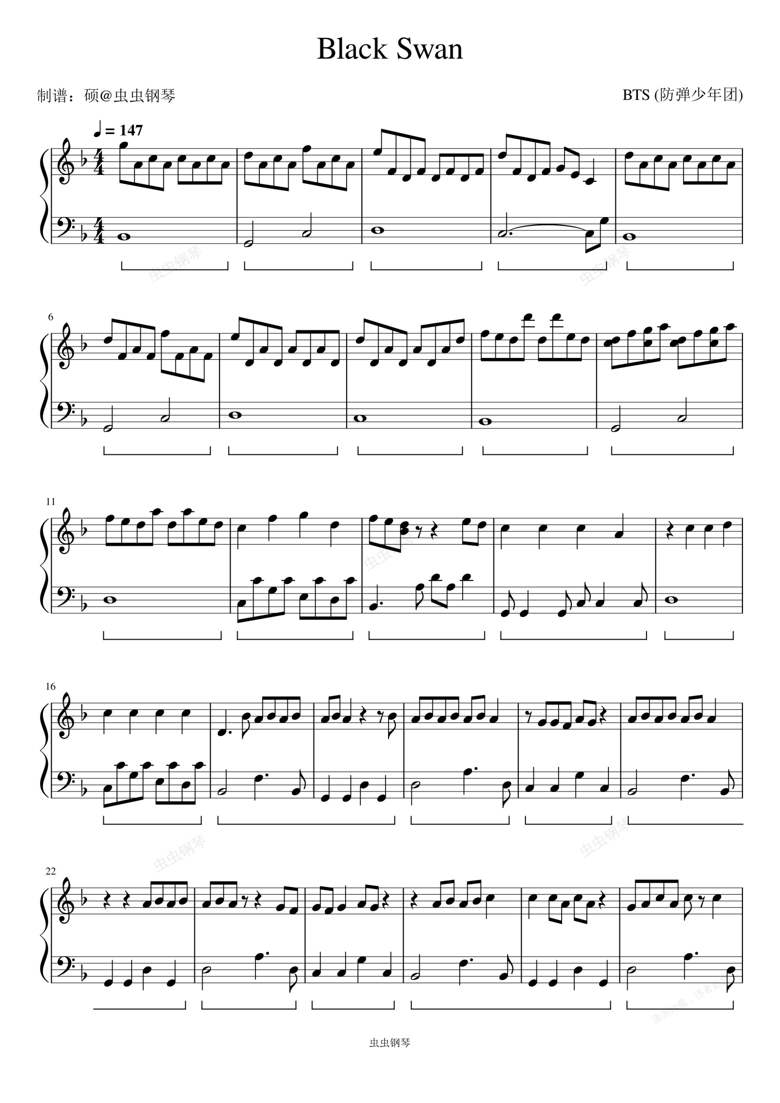 钢琴谱:Black Swan - BTS (防弹少年团)