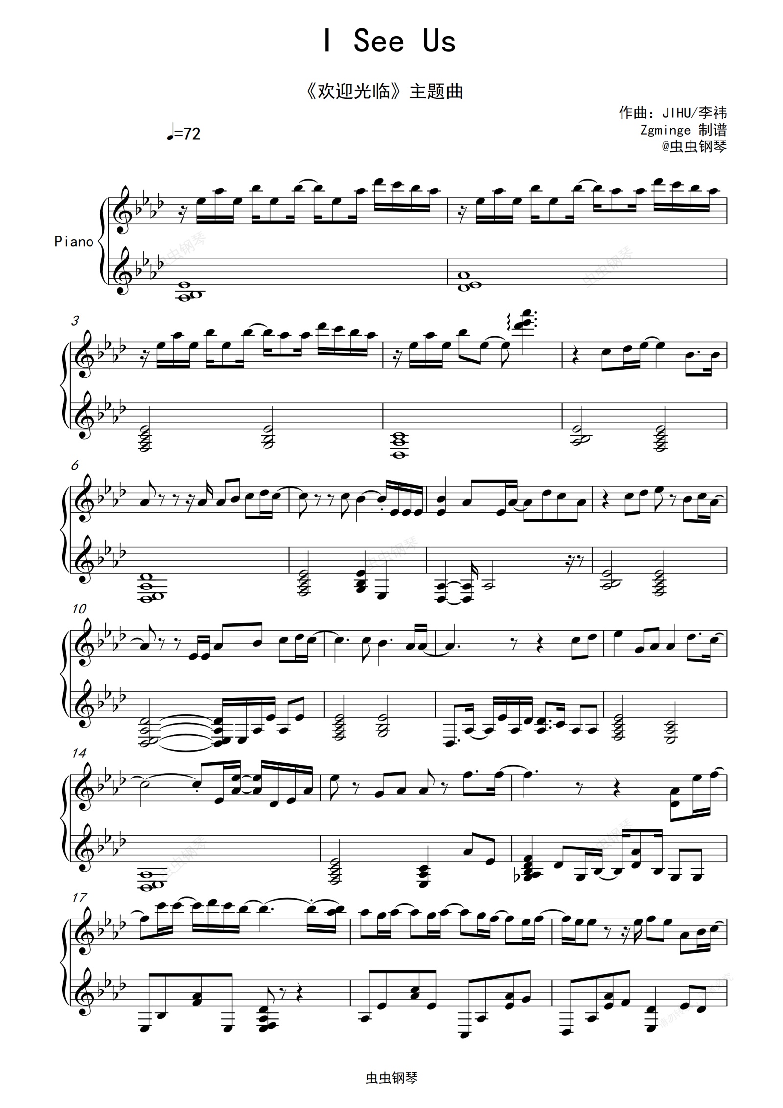 钢琴谱:I See Us 原调