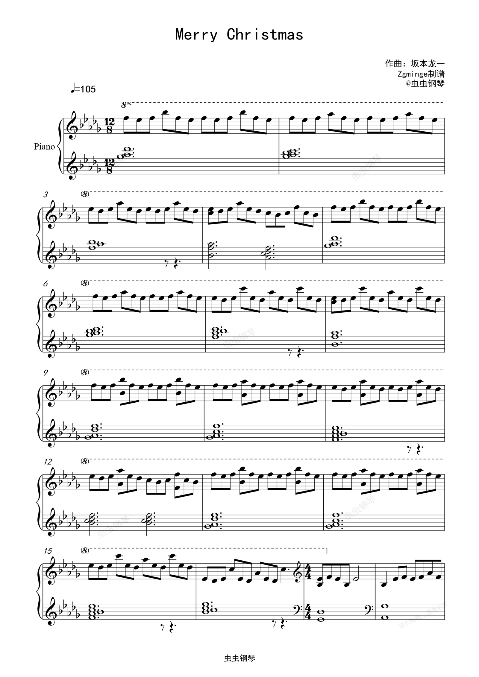 钢琴谱:Merry Christmas Mr. Lawrence 原版