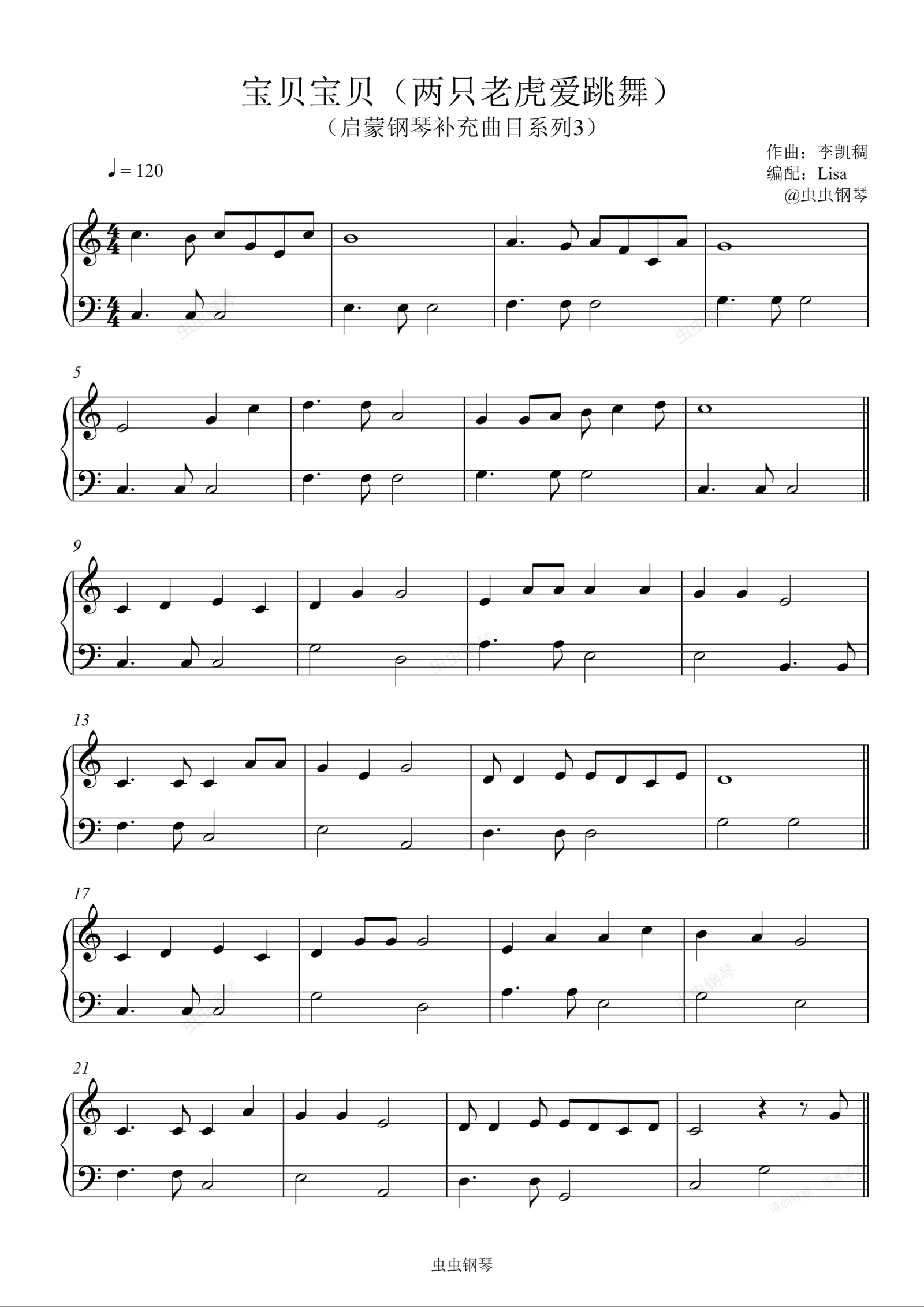 钢琴谱:宝贝宝贝(两只老虎爱跳舞)