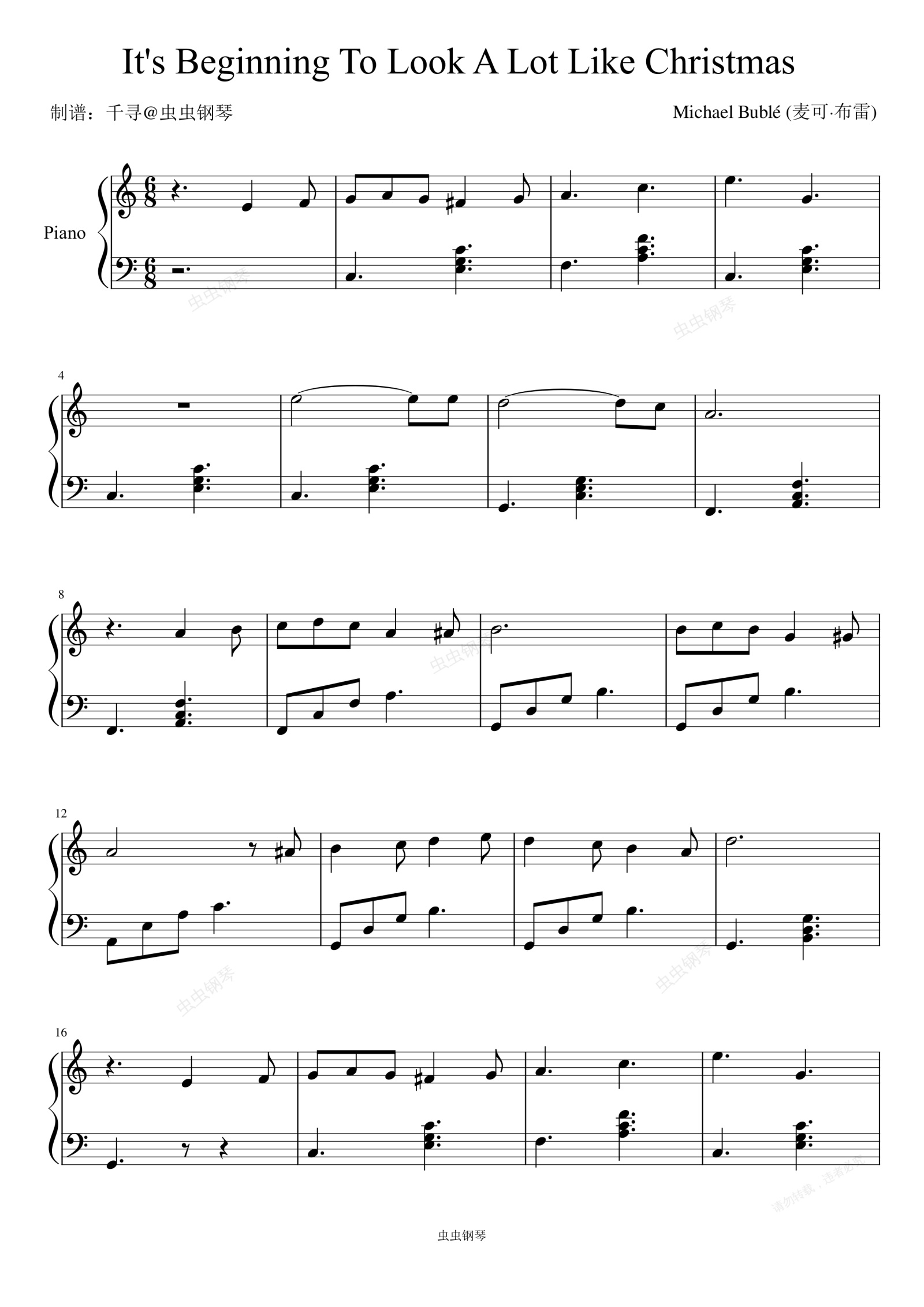 钢琴谱:It's Beginning To Look A Lot Like Christmas - Michael Bublé (麦可·布雷)