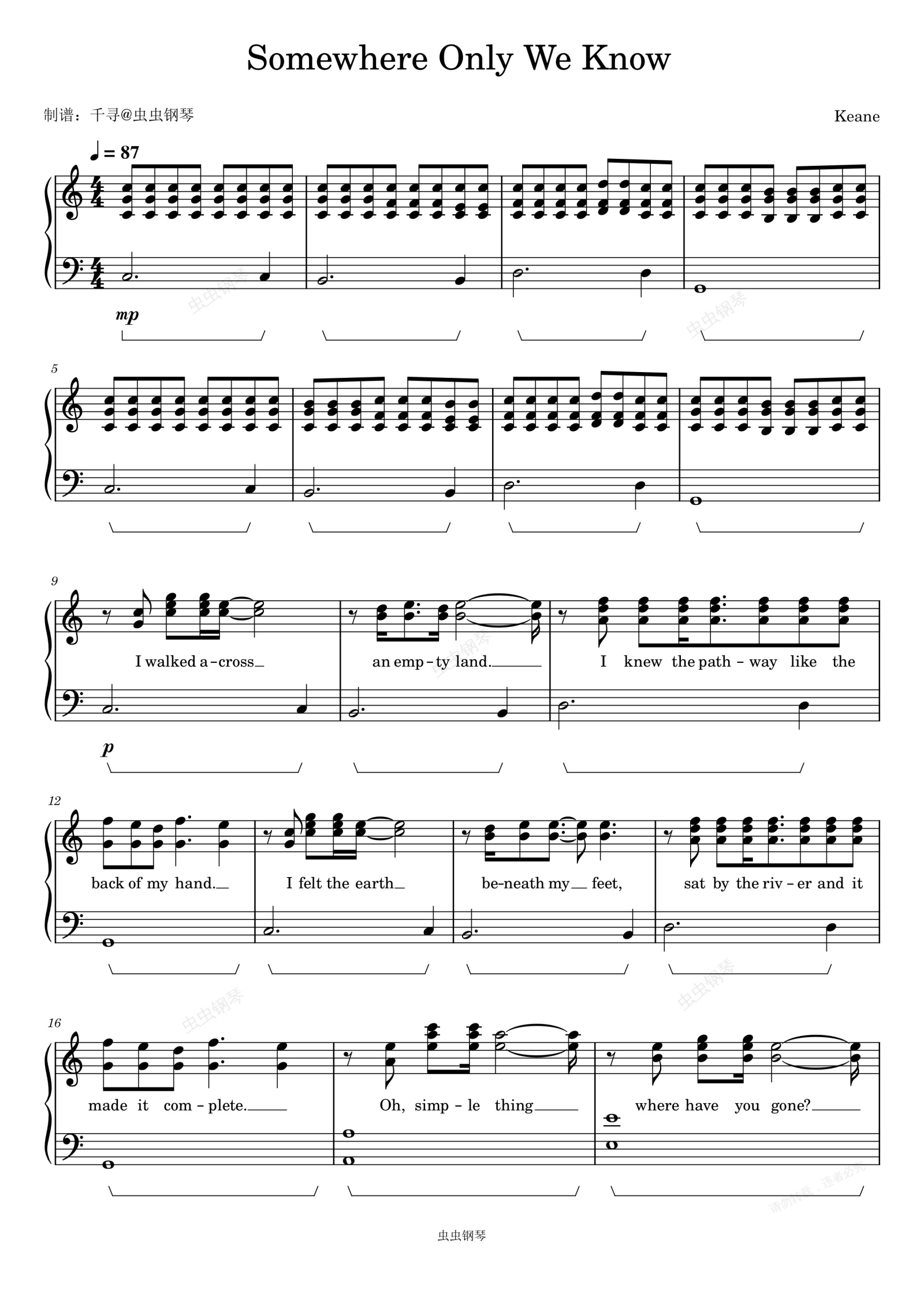 钢琴谱:Somewhere Only We Know - Keane