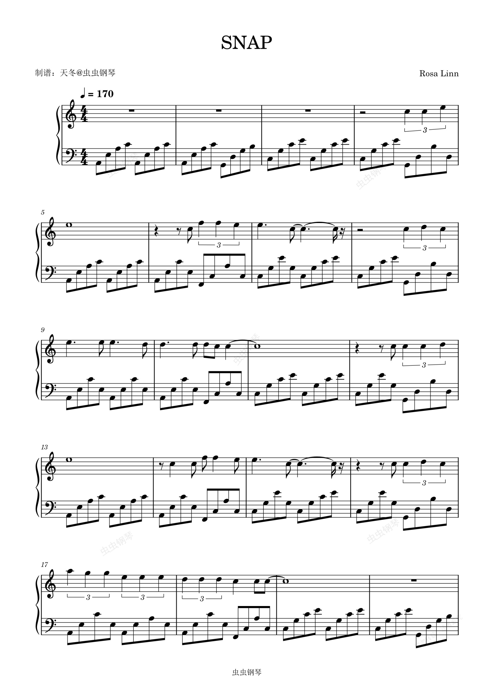 钢琴谱:SNAP-UK排行榜23新人Rosa Linn单曲
