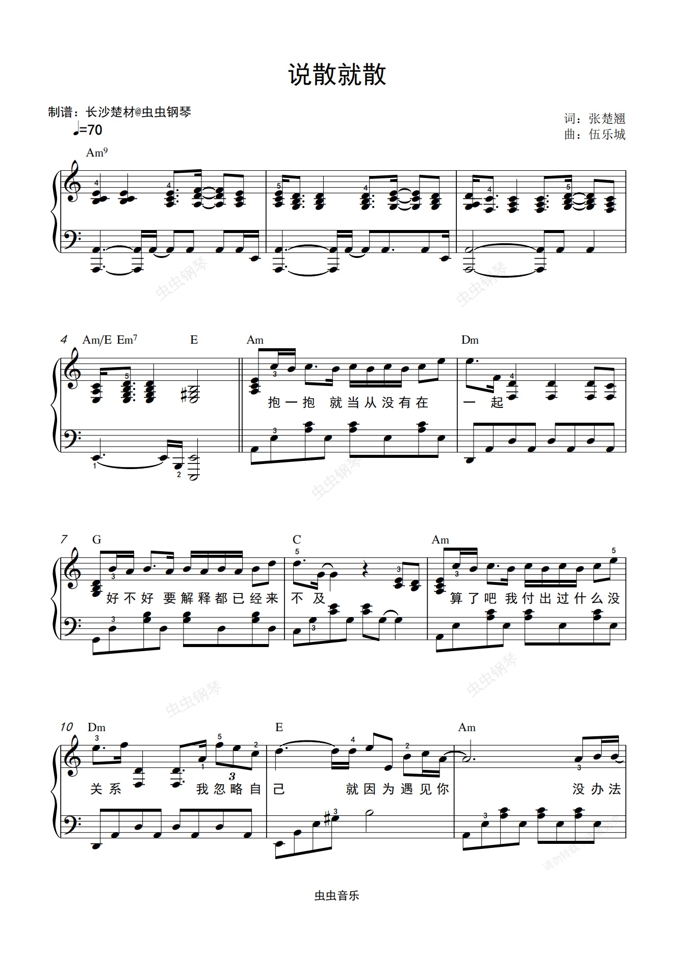 钢琴谱:说散就散