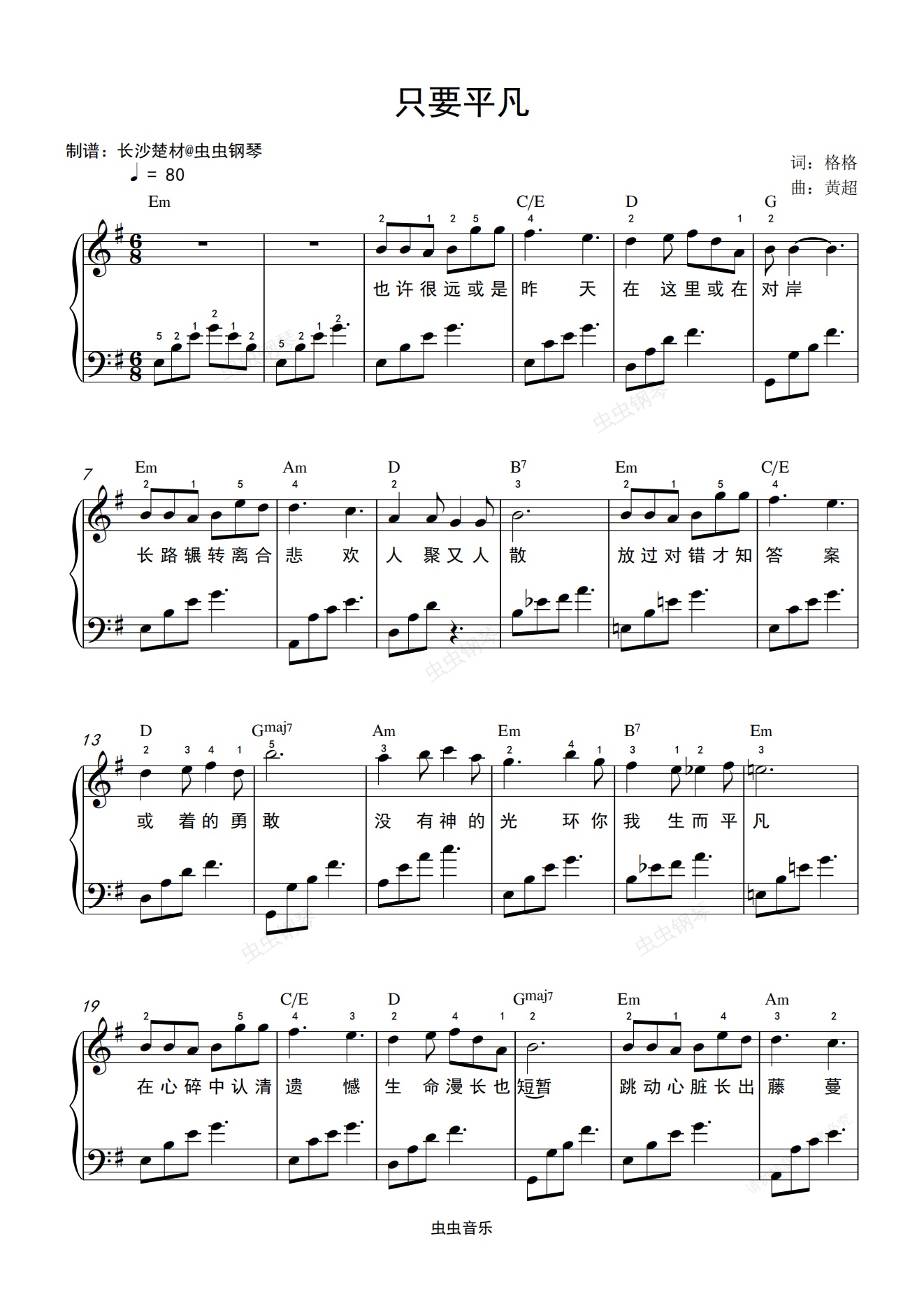 钢琴谱:只要平凡