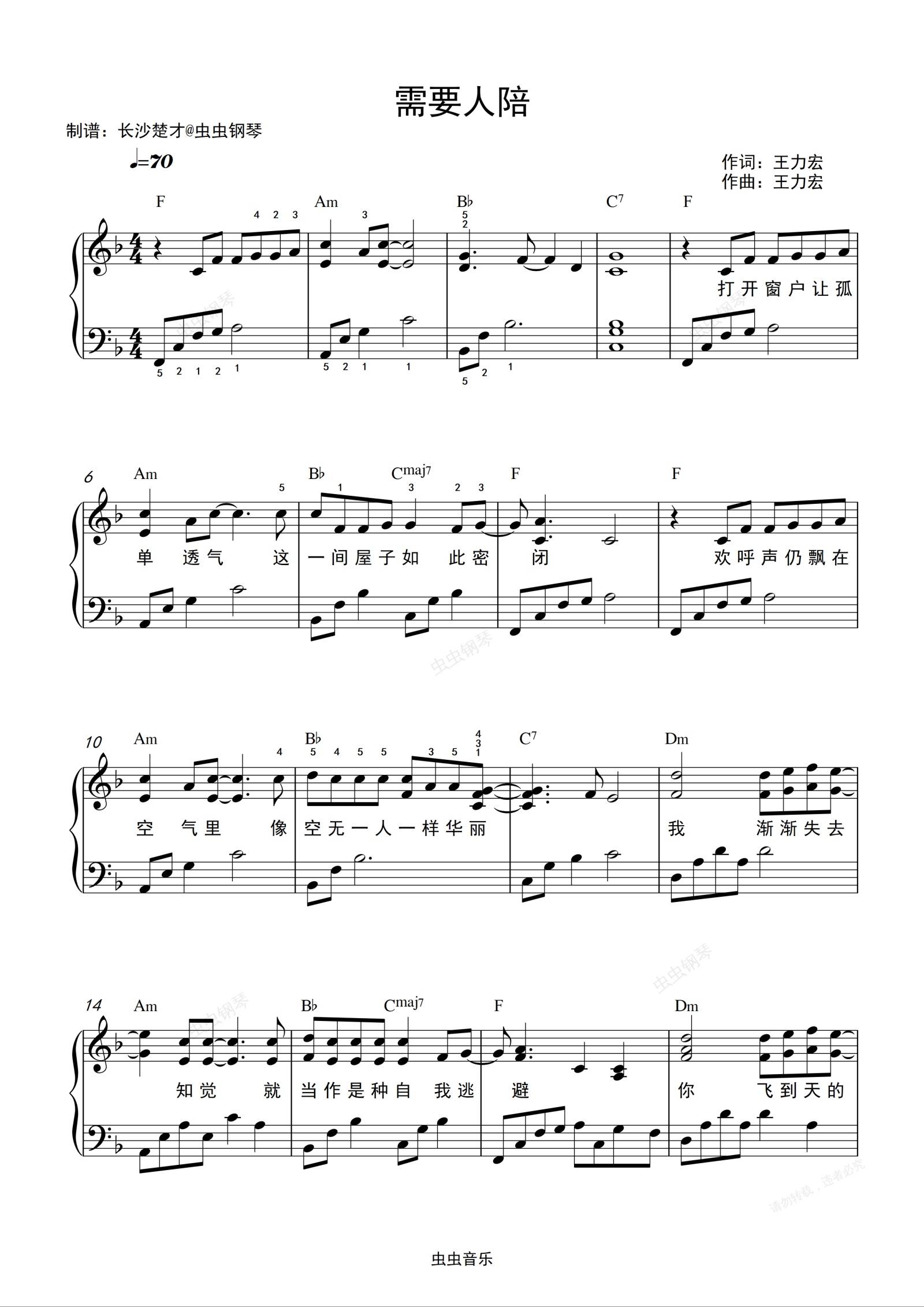 钢琴谱:需要人陪