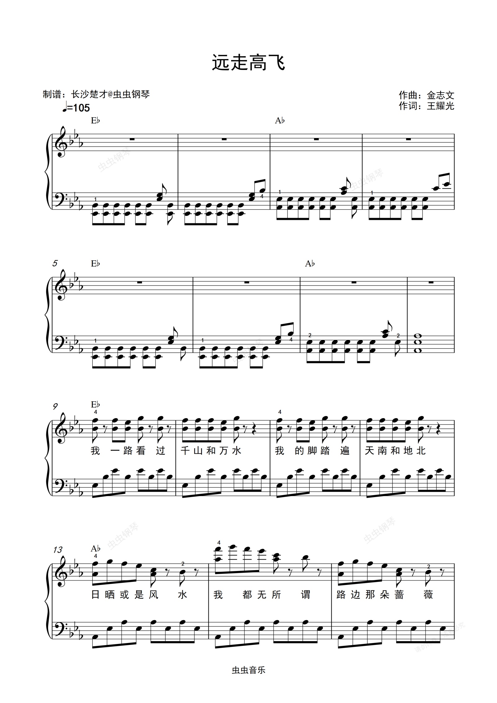 钢琴谱:远走高飞
