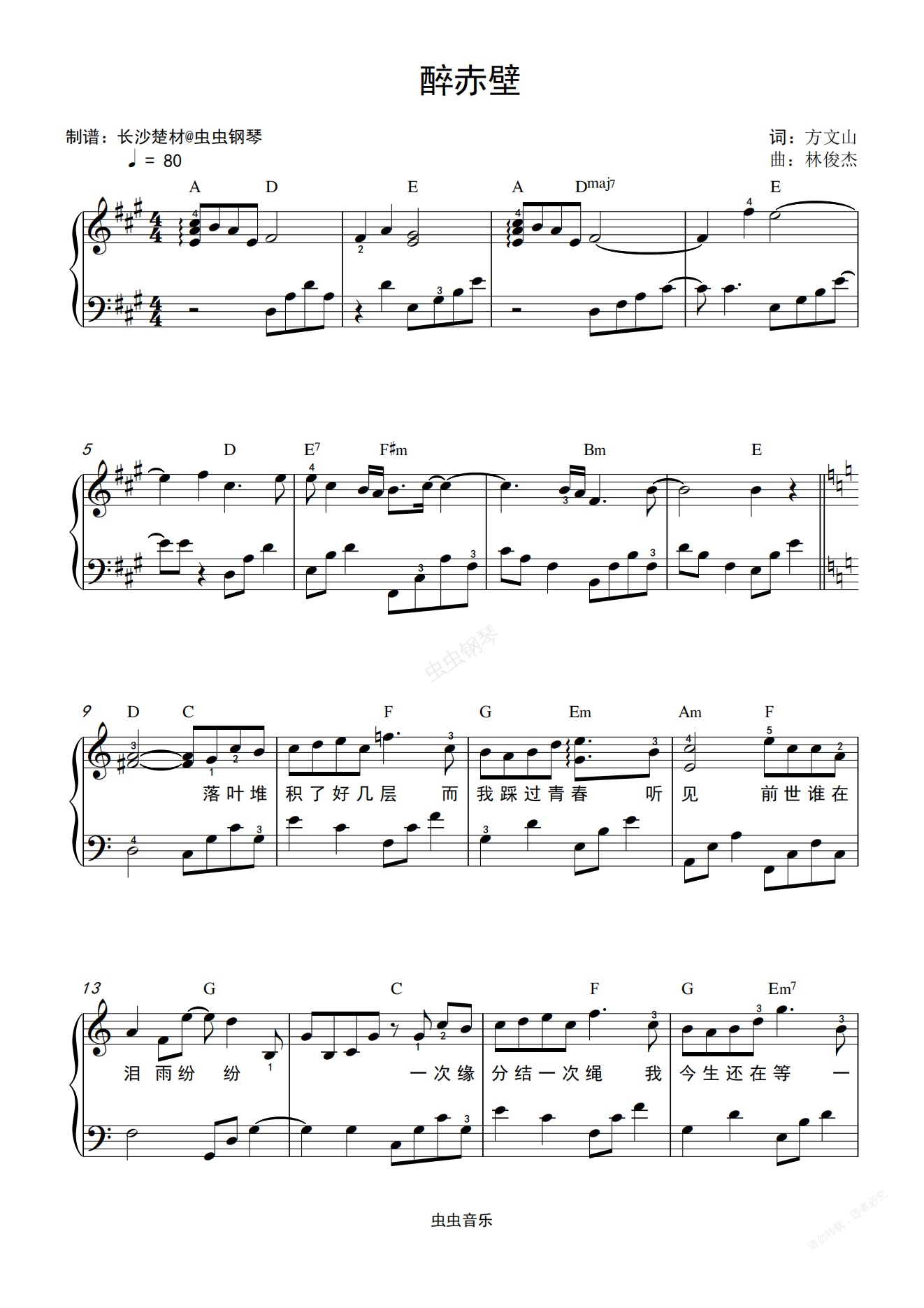 钢琴谱:醉赤壁