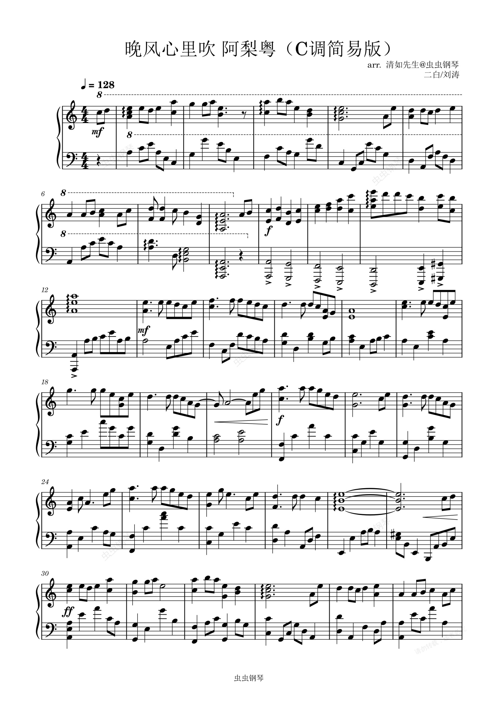 晚风心里吹-阿梨粤 C调完美简易版