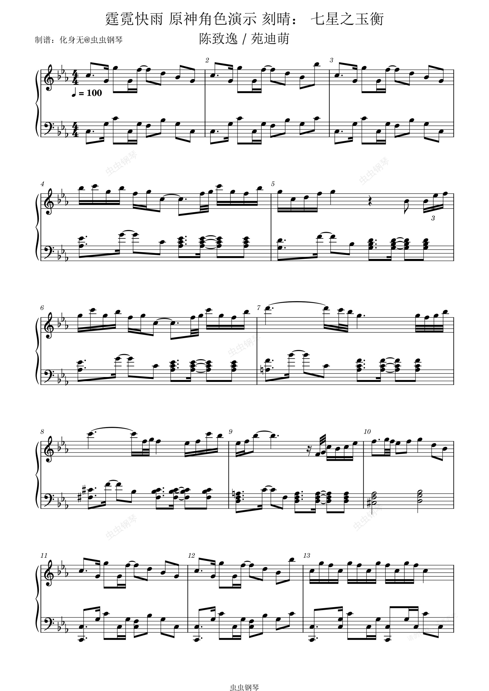 钢琴谱:霆霓快雨 原神角色演示刻晴 七星之玉衡 Nimble as Lightning