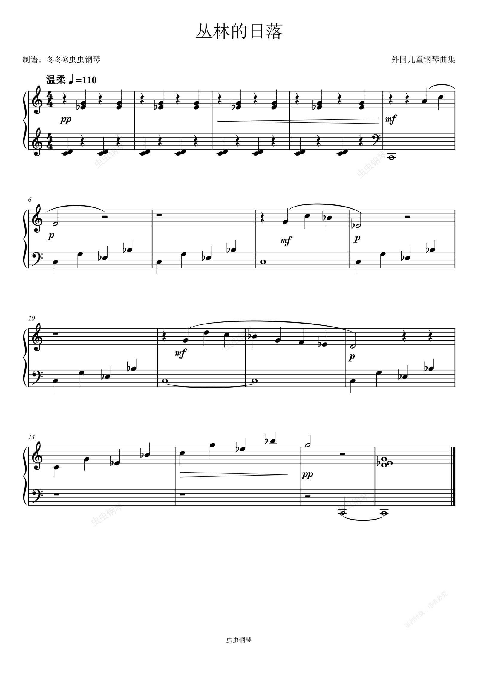 钢琴谱:丛林的日落