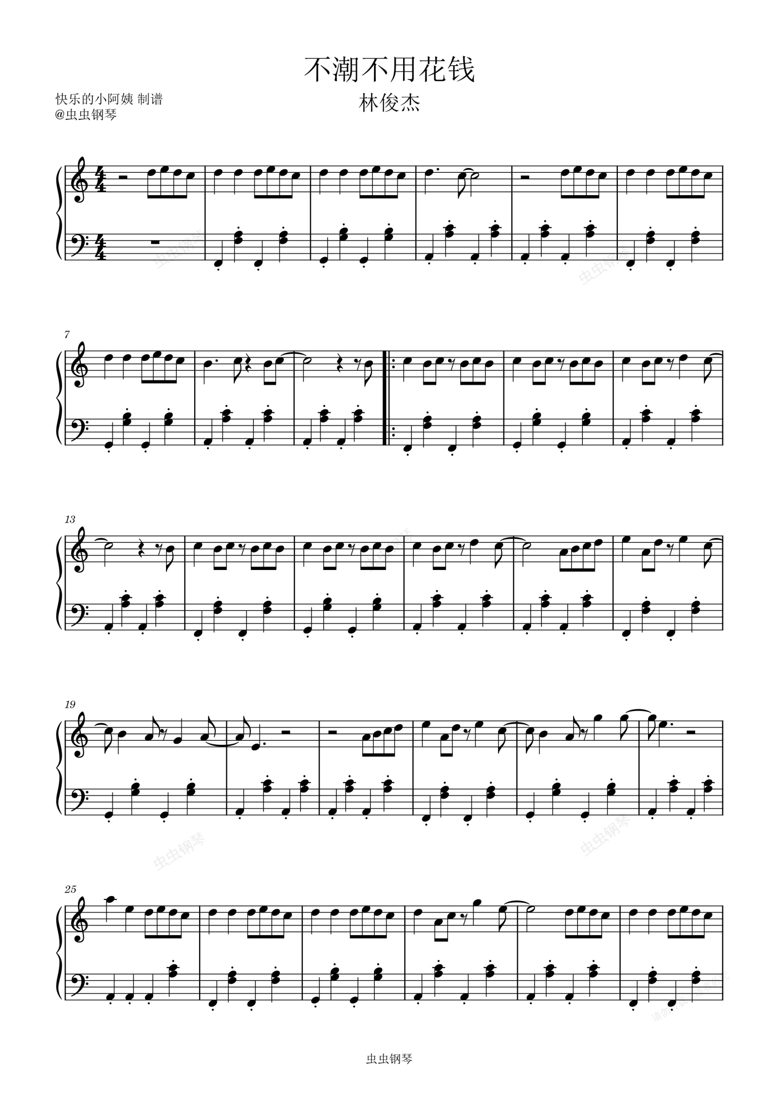 钢琴谱:不潮不用花钱-林俊杰-C调