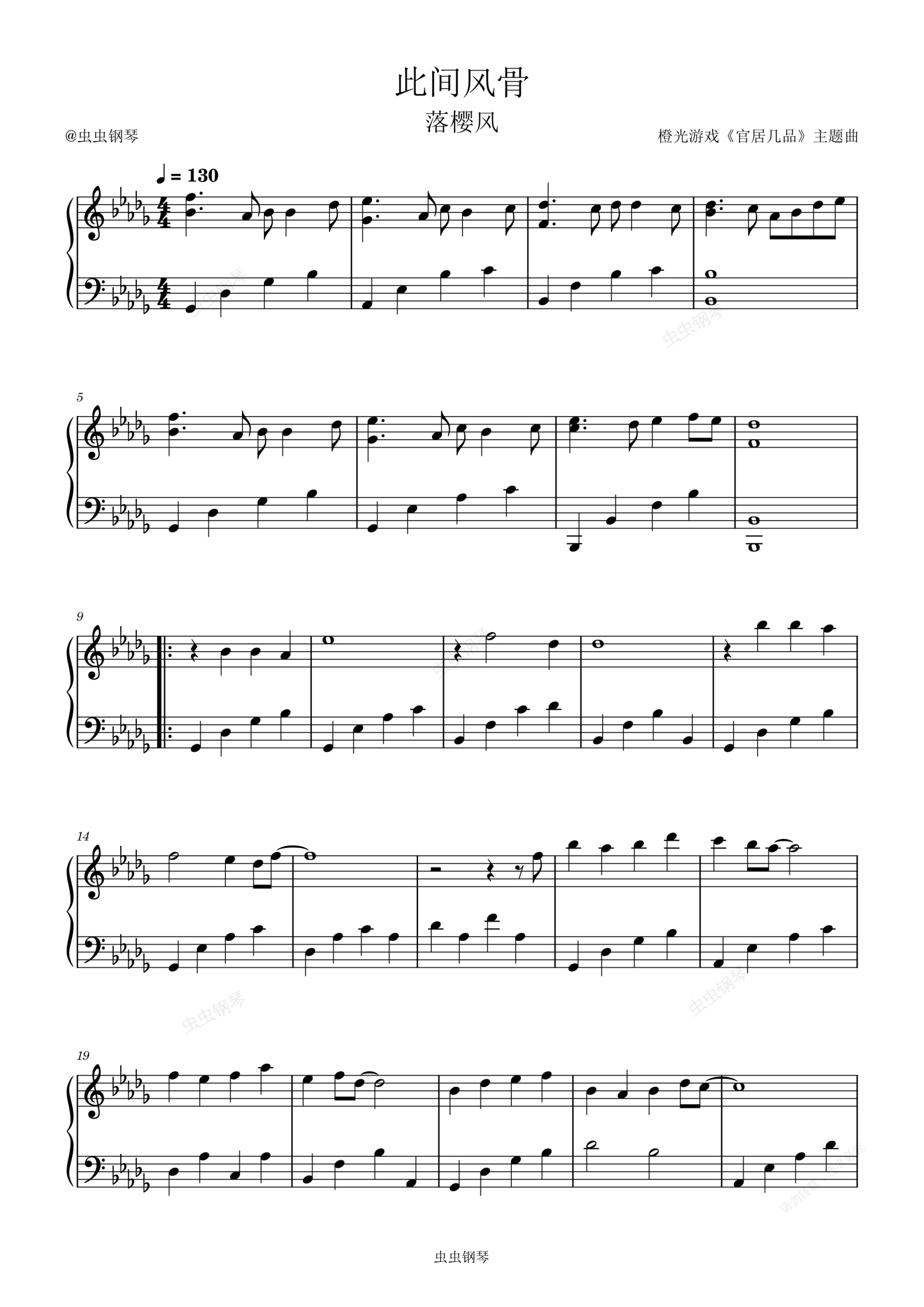 钢琴谱:此间风骨-橙光游戏《官居几品》主题曲